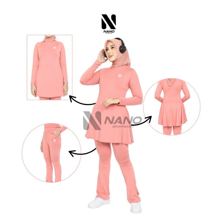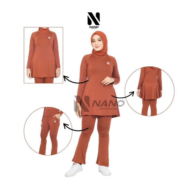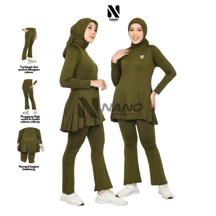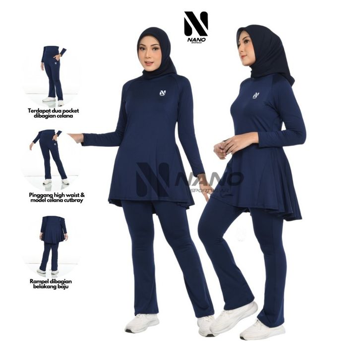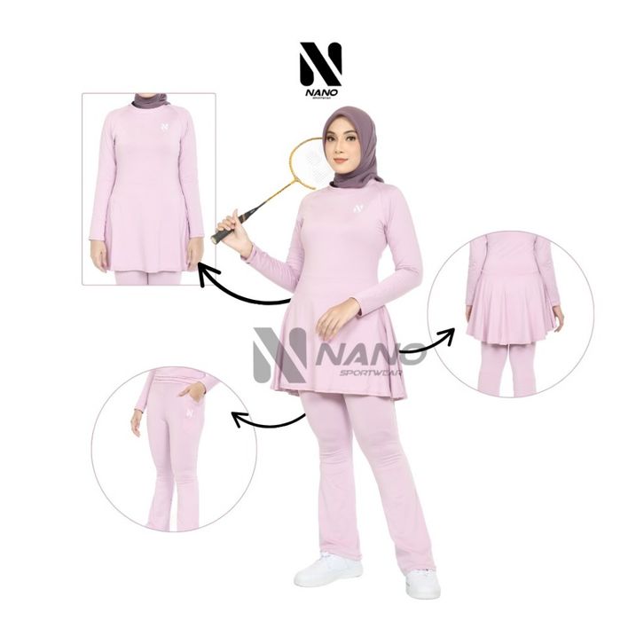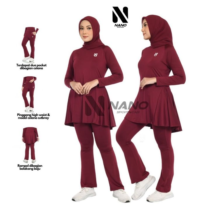 [Star] Baju Olahraga Wanita Muslim Setelan Celana Cutbray Oneset Baju Senam Jogging Gym Badminton Padel Simple Terbaru