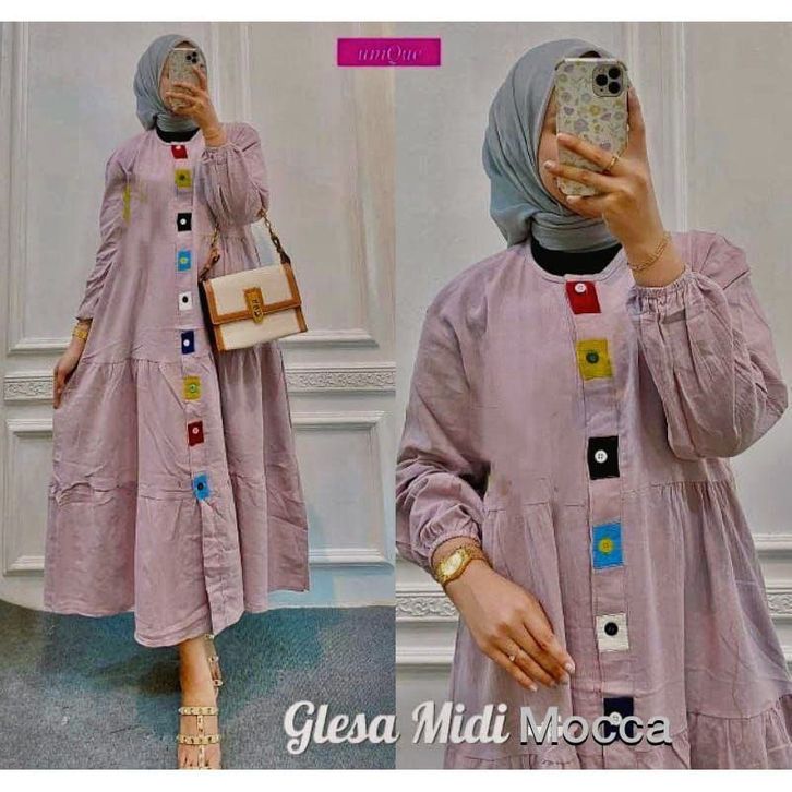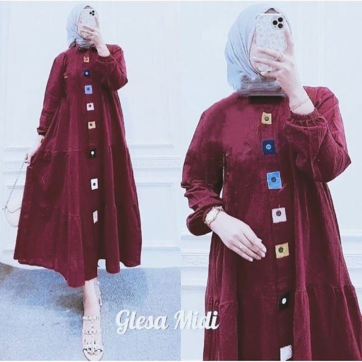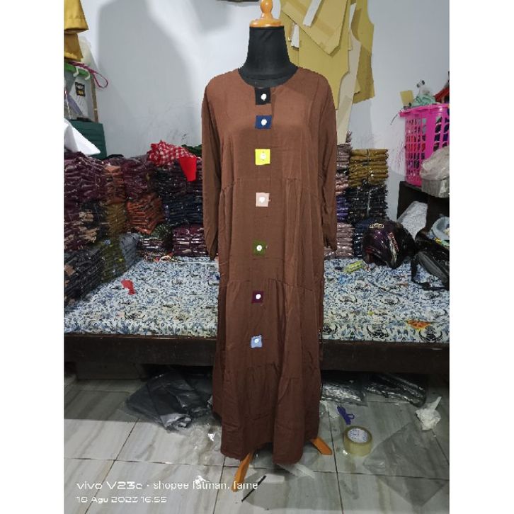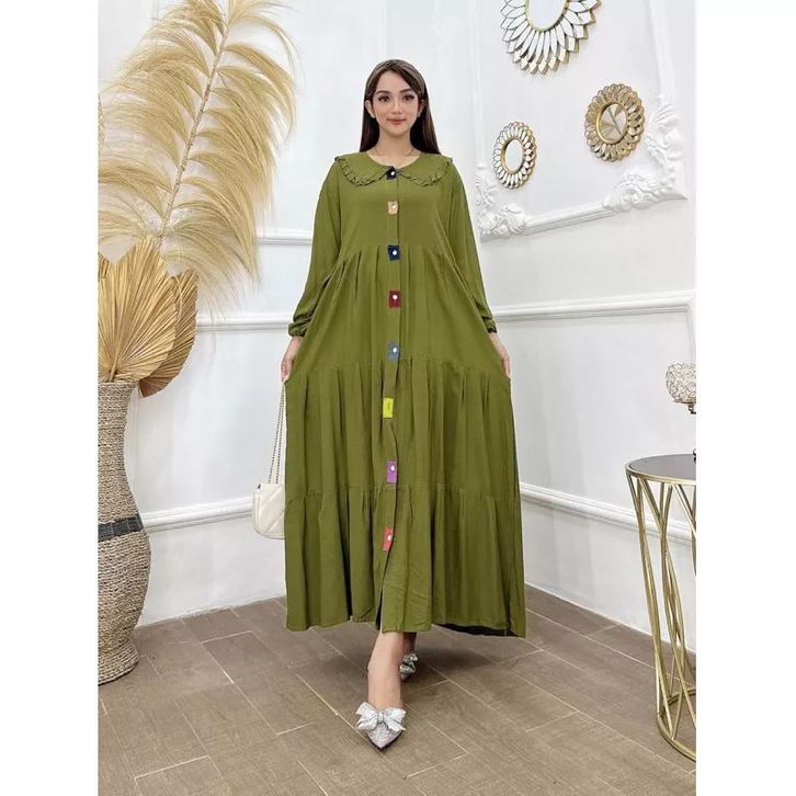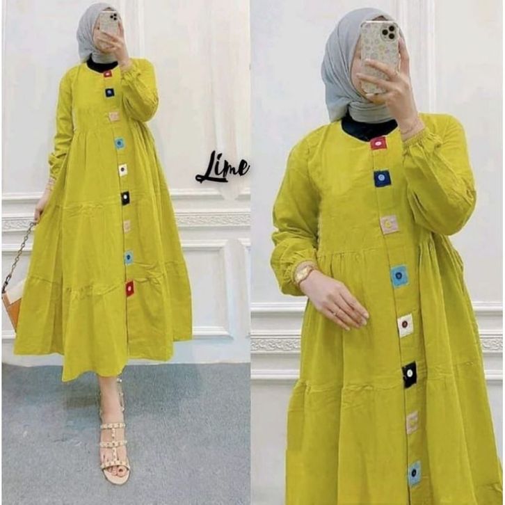 Midi Dress Cewek Kancing Pelangi Gamis Rayon Perempuan Fashion Muslimah Lebran Pesta Kondangan Kekinian Bahan Rayon