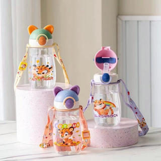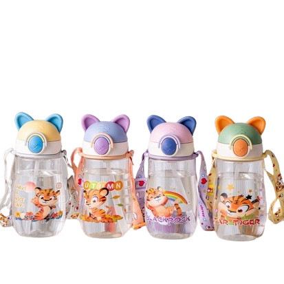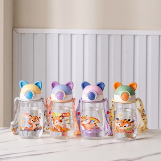 Botol Minum Anak Model Tutup Telinga Kucing 450ml Tali Sedotan