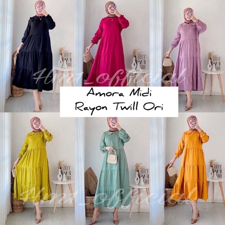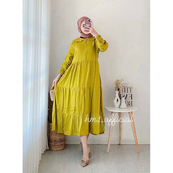 Midi Dress Cewek Dewasa Gamis Dress Perempuan Fashion Muslimah Lebaran Pesta Bahan Rayon Twill Premium