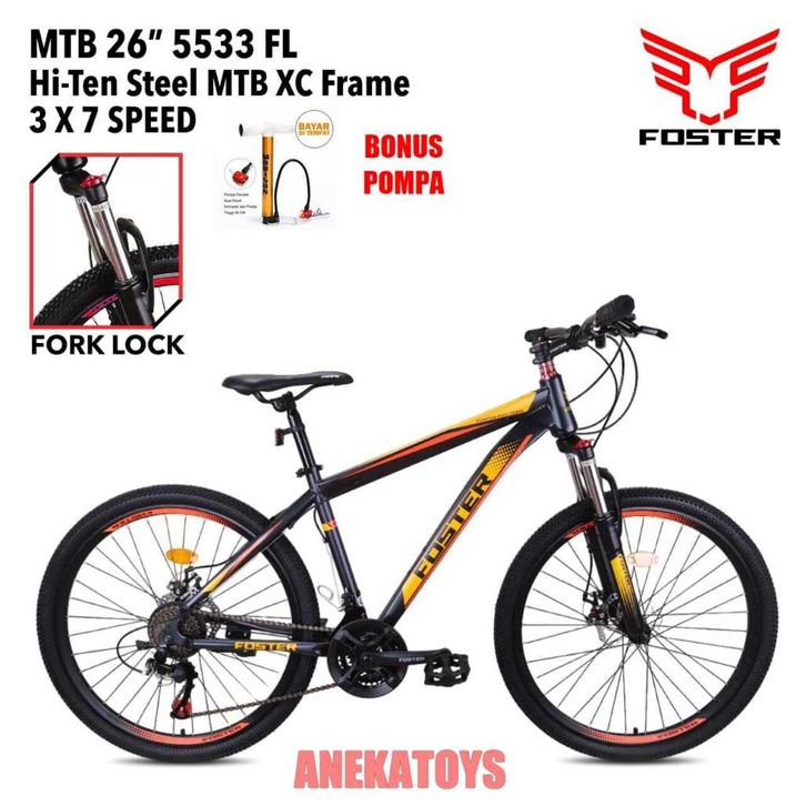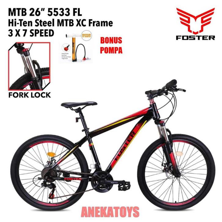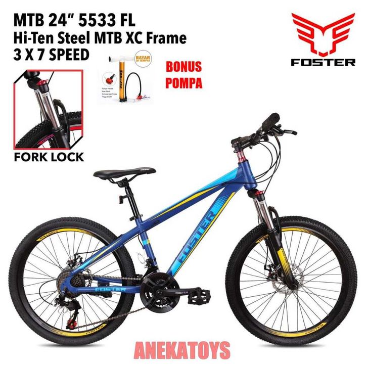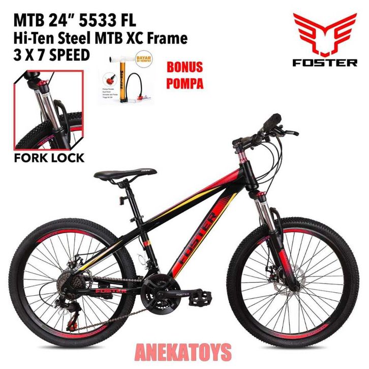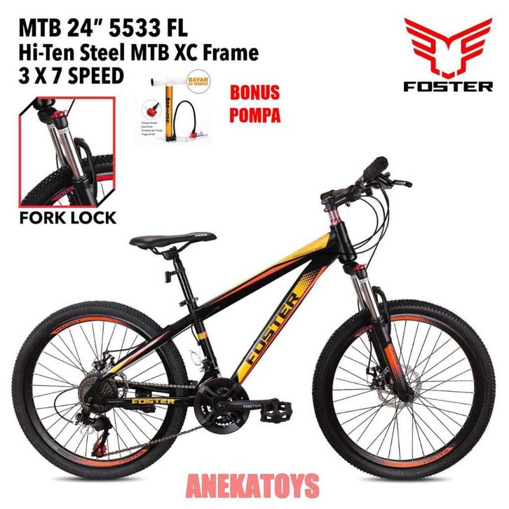 BONUS POMPA Sepeda Gunung Foster 5533FL MTB 24, 26 Inch Hi Teen Steel 3x7 Speed