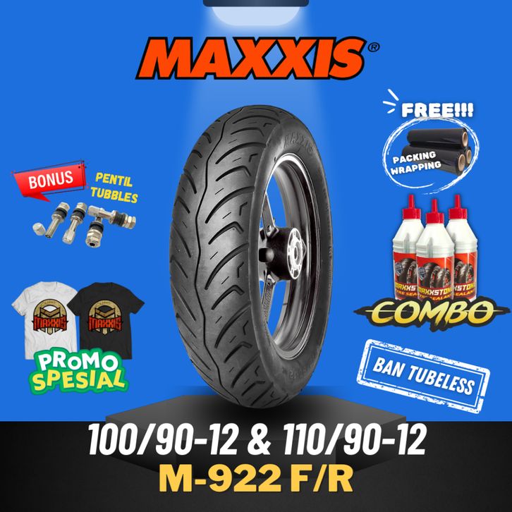 Paket Ban Tubles Matic 100/90 + 110/90-12 Maxxis 1Set Ring 12 Tubeless Honda Scoopy Fi Maxis Metik Yamaha Freego Ban