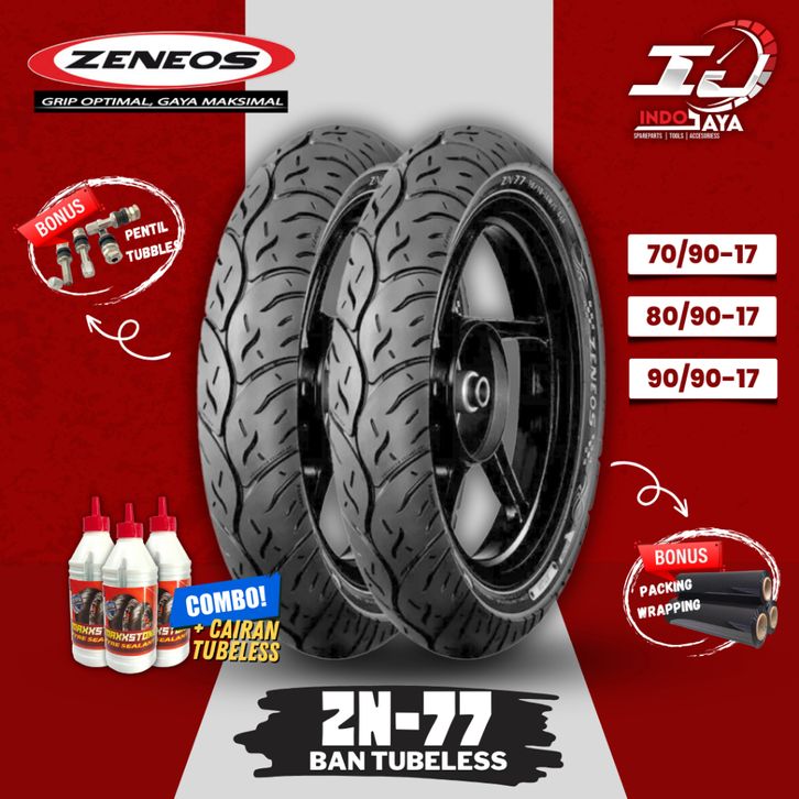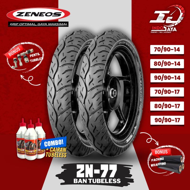 BAN LUAR TUBELESS ZENEOS ZN77 (70/90-14 - 80/90-14 - 90/90-14 - 70/90-17 - 80/90-17 - 90/90-17) RING 14 / RING 17 BAN