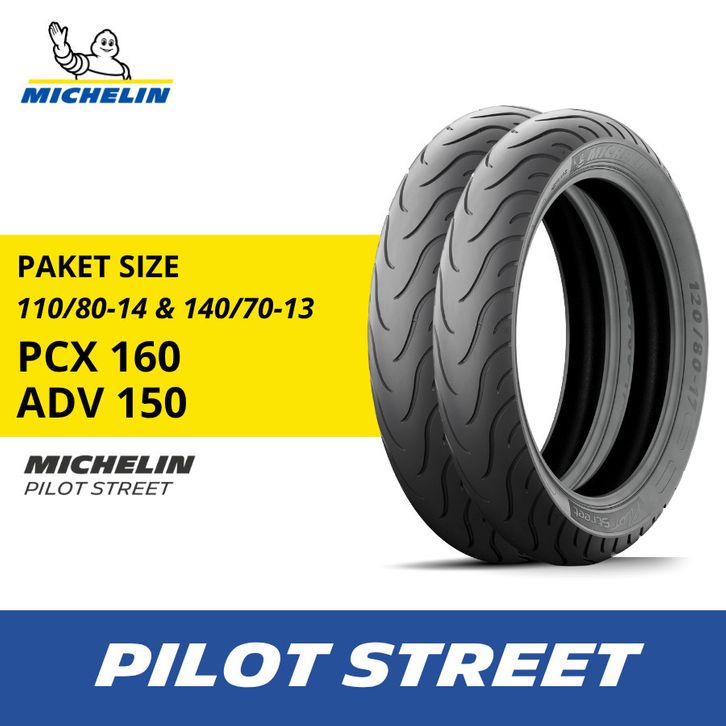 Sepasang Ban Motor PCX 160 dan ADV 150 Michelin Pilot Street 140-70 R13 dan 110-80 R14 - Ban Motor Tubeless
