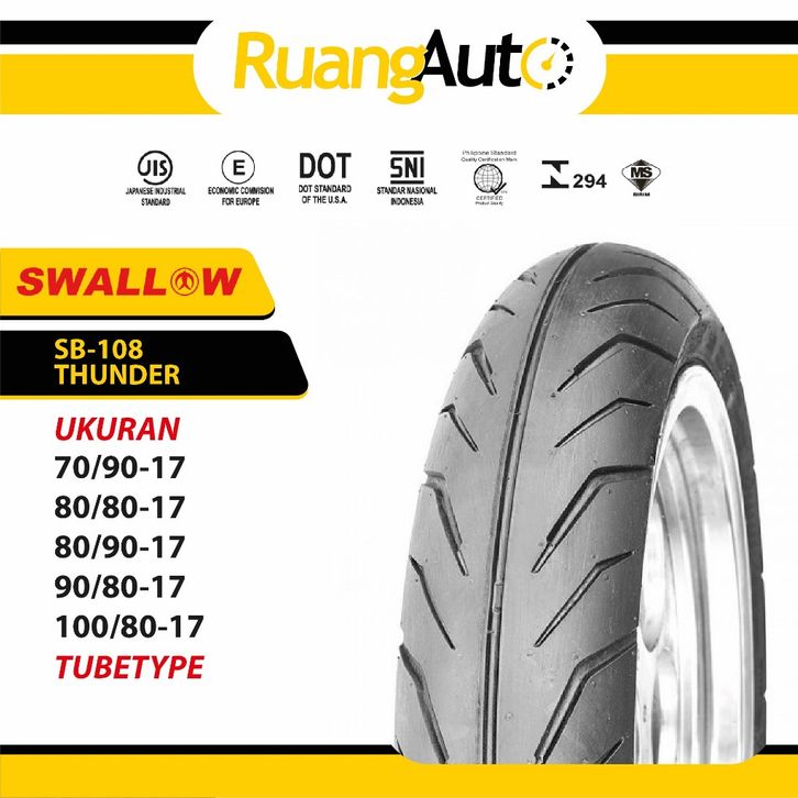 BAN MOTOR SWALLOW SB-108 THUNDER RING 17 NON TUBLES UKURAN | 70/90 | 80/80 | 80/90 | 90/80 | 100/80