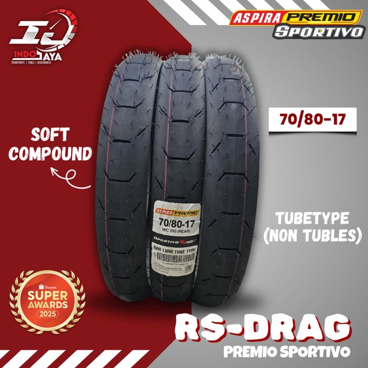 BAN ASPIRA PREMIO SPORTIVO RS01 ( 70/80-17 - 90/80-14 - 90/80-17 - 100/80-17 )TUBELESS SOFT COMPOUND RING 14
