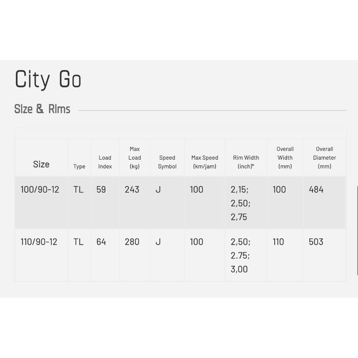 BAN LUAR TUBELESS FDR CITY GO / CITYGO RING 12 (100/90-12 - 110/90-12) BAN DEPAN BELAKANG MOTOR SCOOPY / SCOOTER /