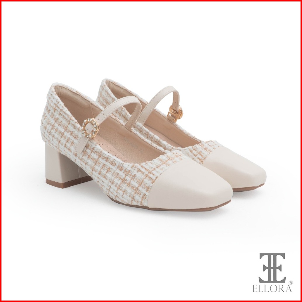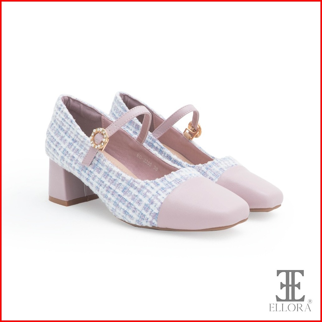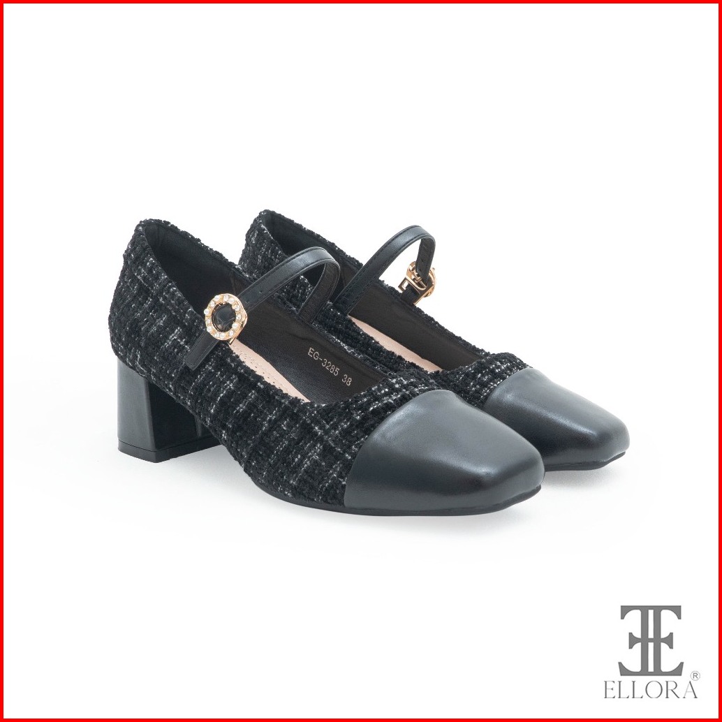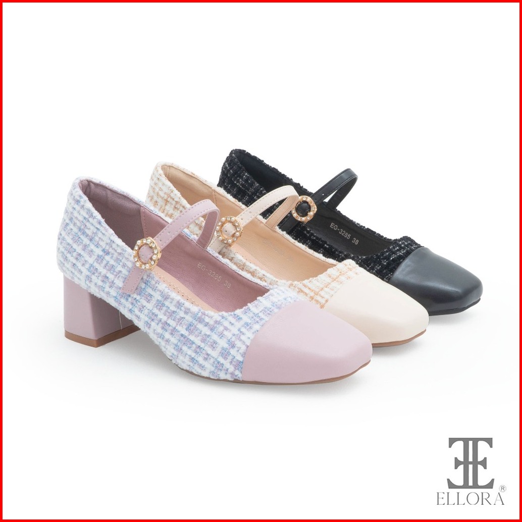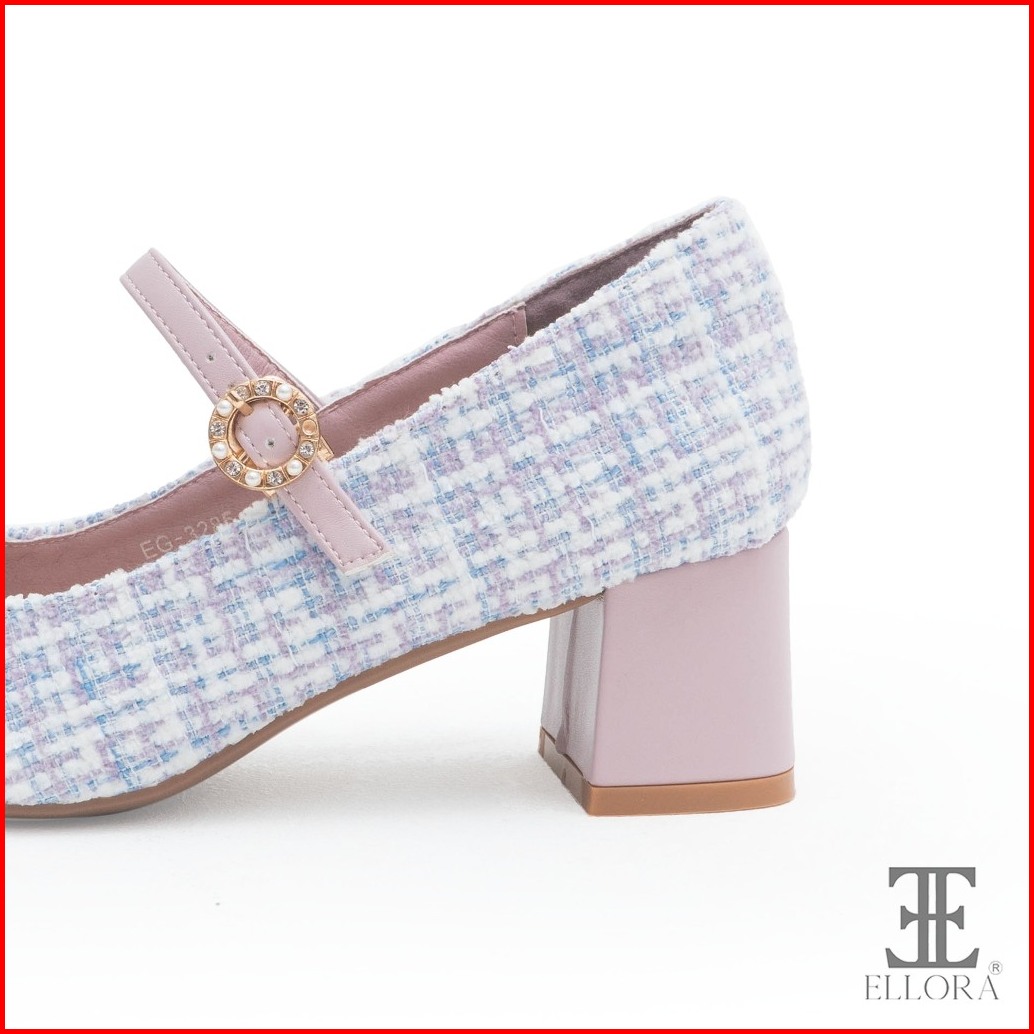 Ellora Eg-3285 Sepatu Wanita Hak Chunky Heels 5cm Ankle Strap Bahan Tweed
