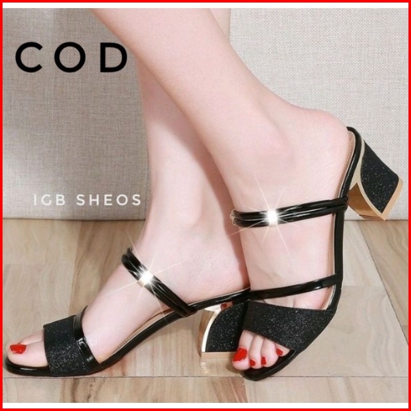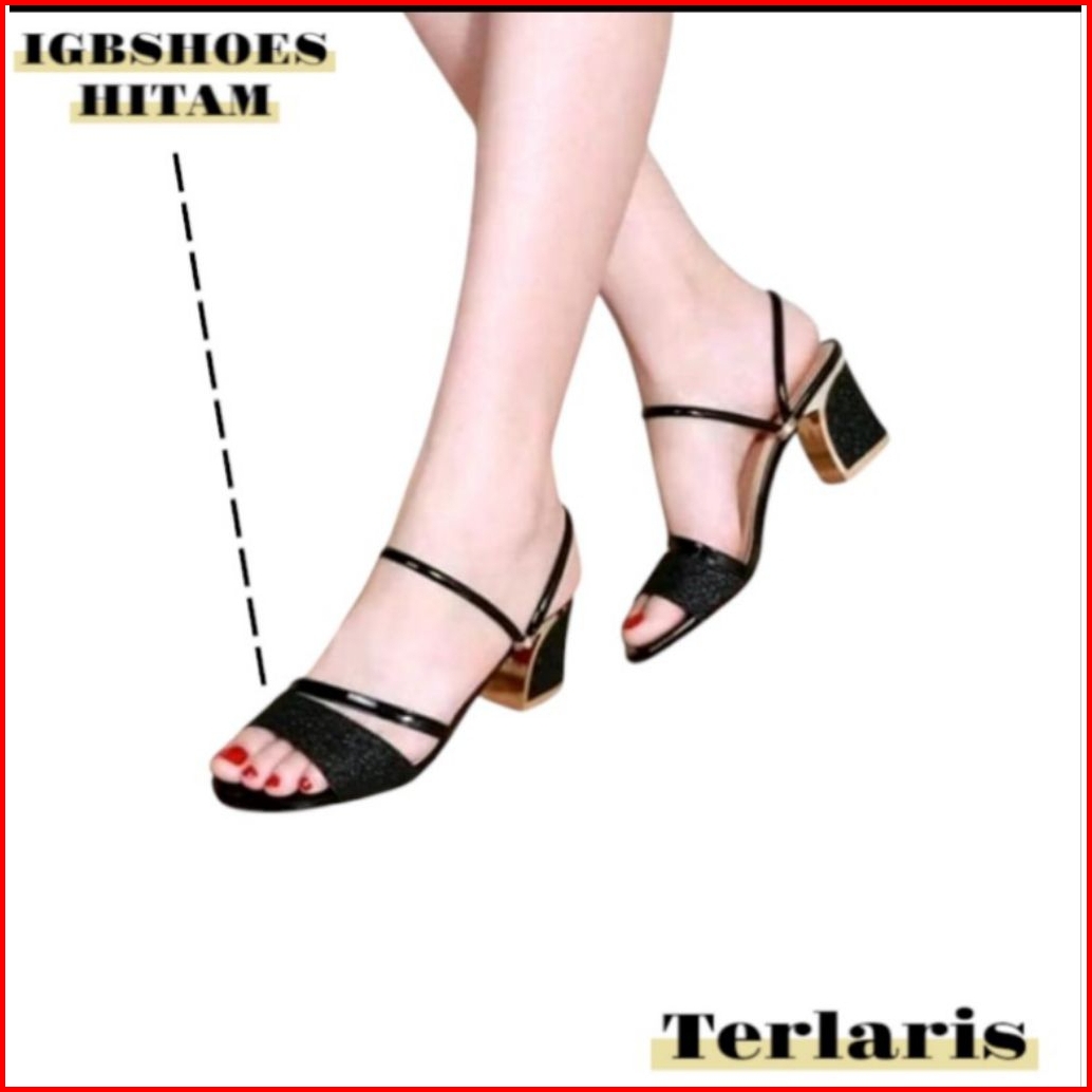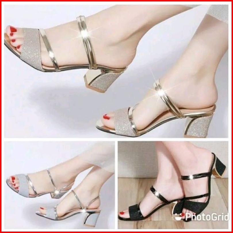 Diskon Setengah Harga Sandal Heels Wanita Pasir Hak Tahu 5cm Terbaru