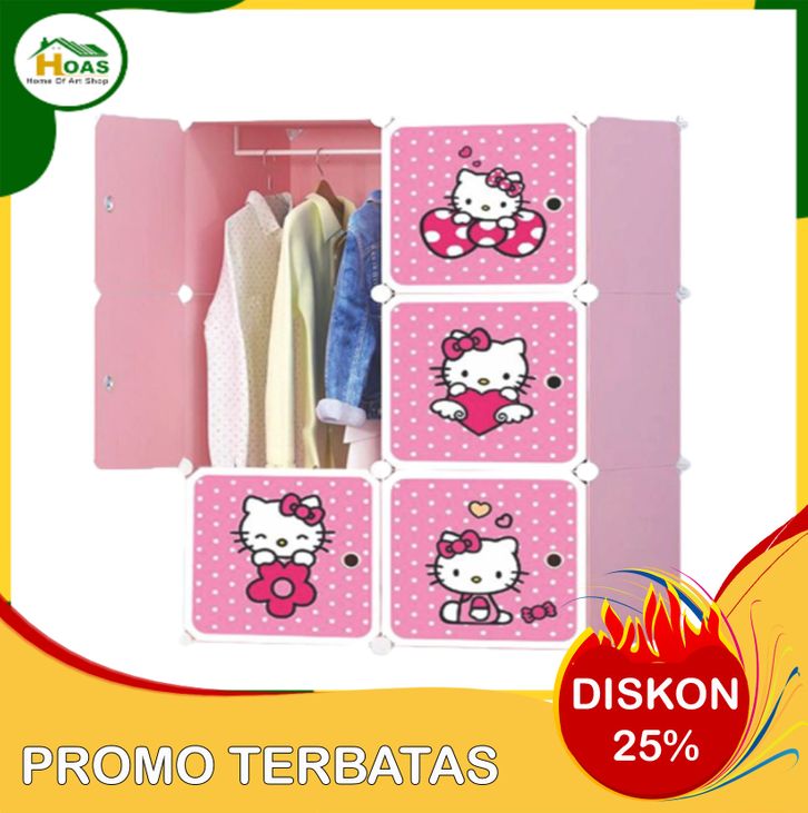 CICILAN/Hoas Lemari Pakaian Rakit Plastik Anak 6 Pintu Lemari Portable Rak Baju Gantungan