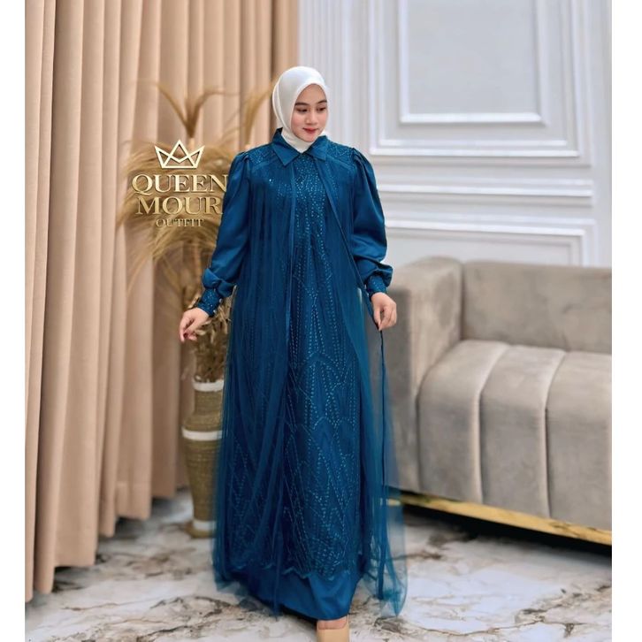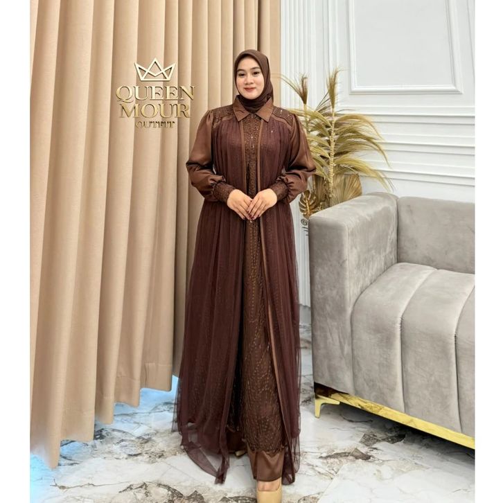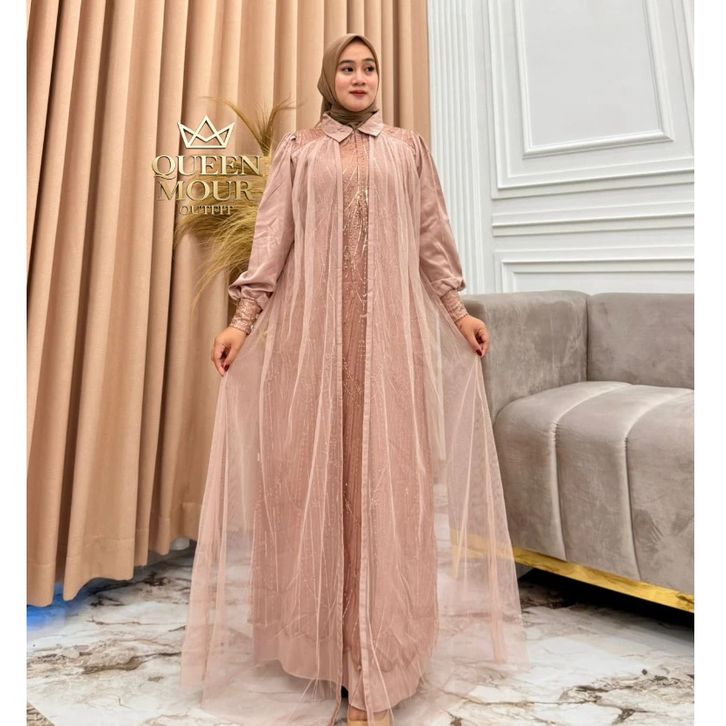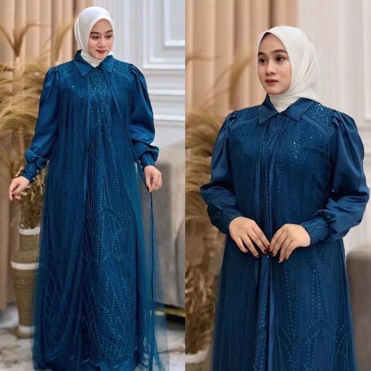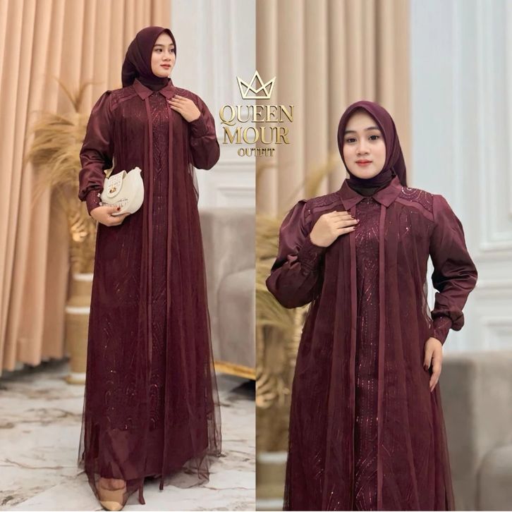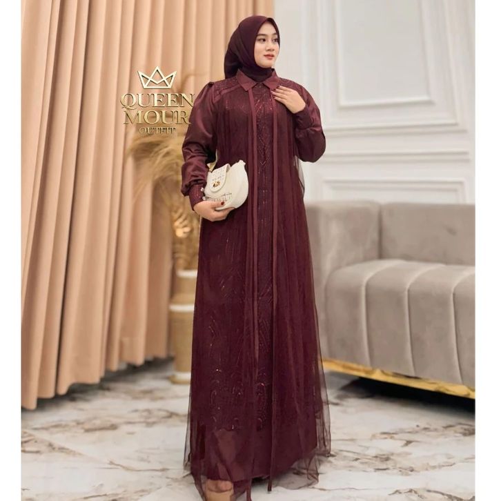 Messa Dress Silk Mix Brukat Tille Premium Dress Lebaran 2026 Gamis Wanita Kekinian Gamis Busui