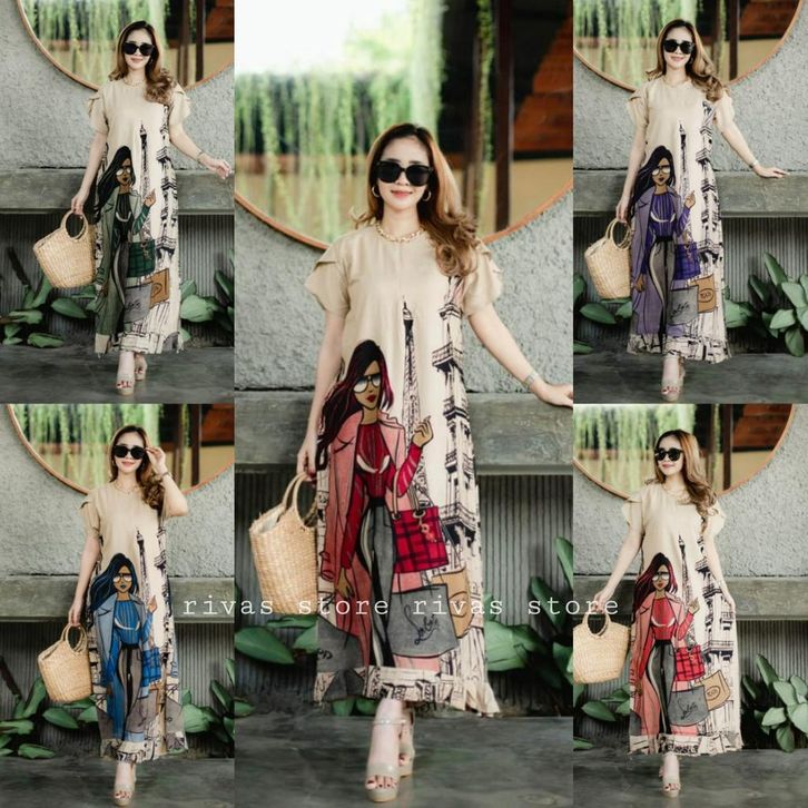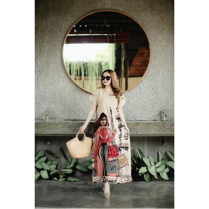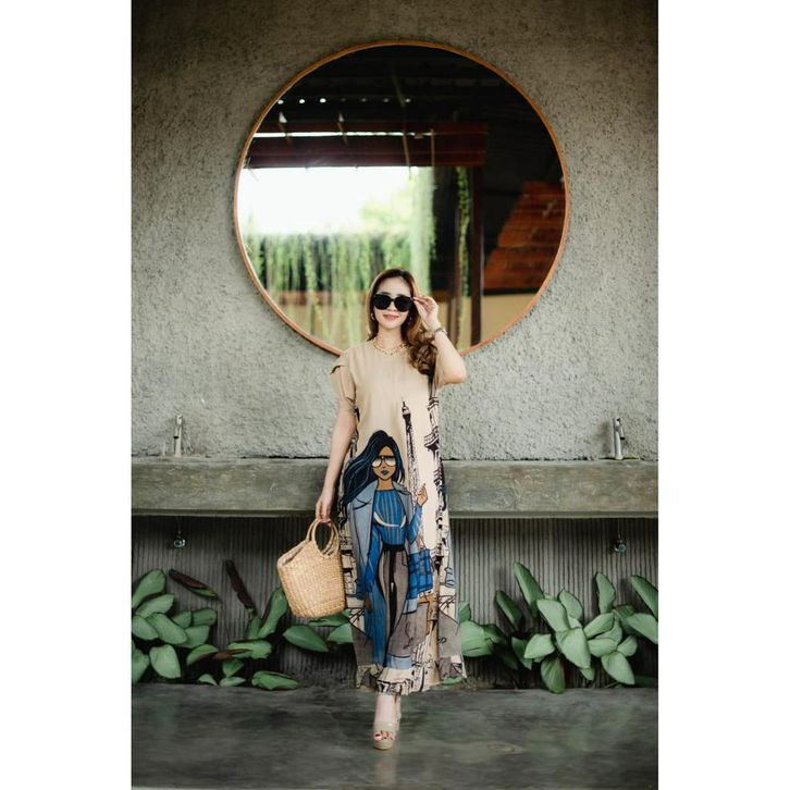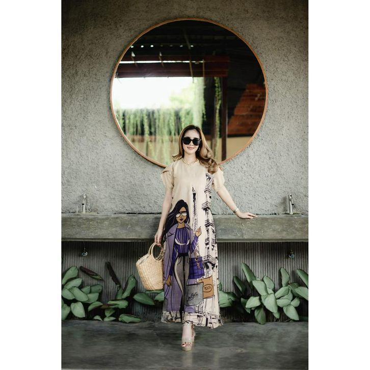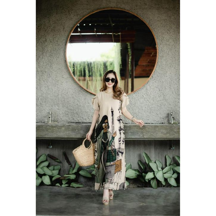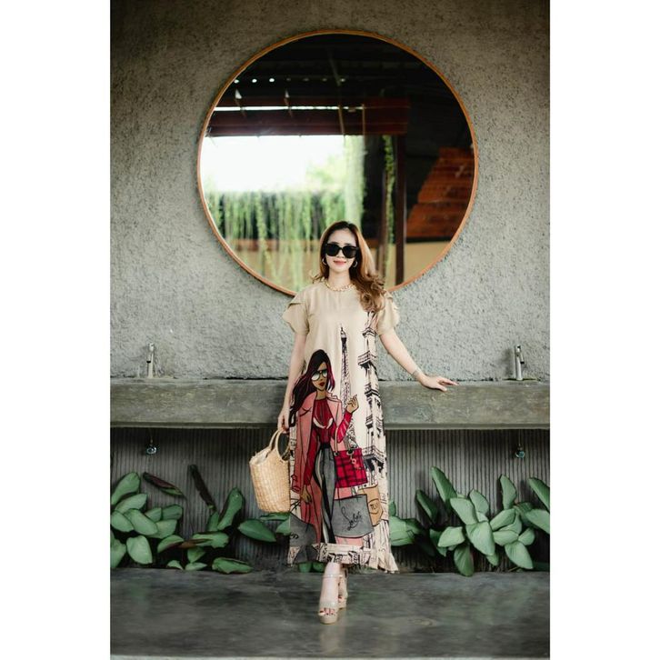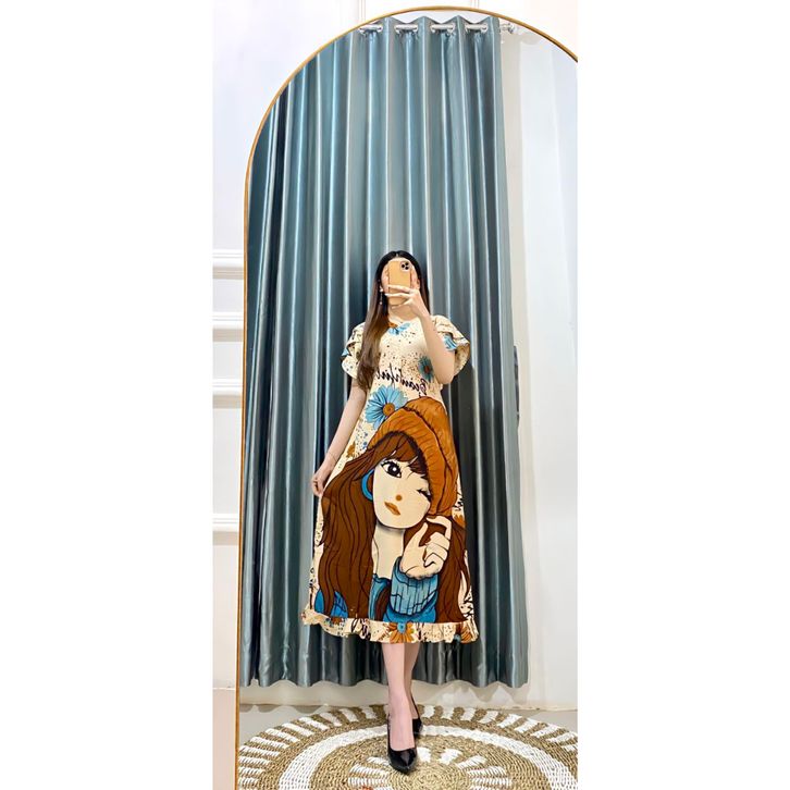 Dress Cewek Lengan Pendek Midi Dress Perempuan Bumil Friendly Motif Unik Cantik Bahan Rayom Super Premium