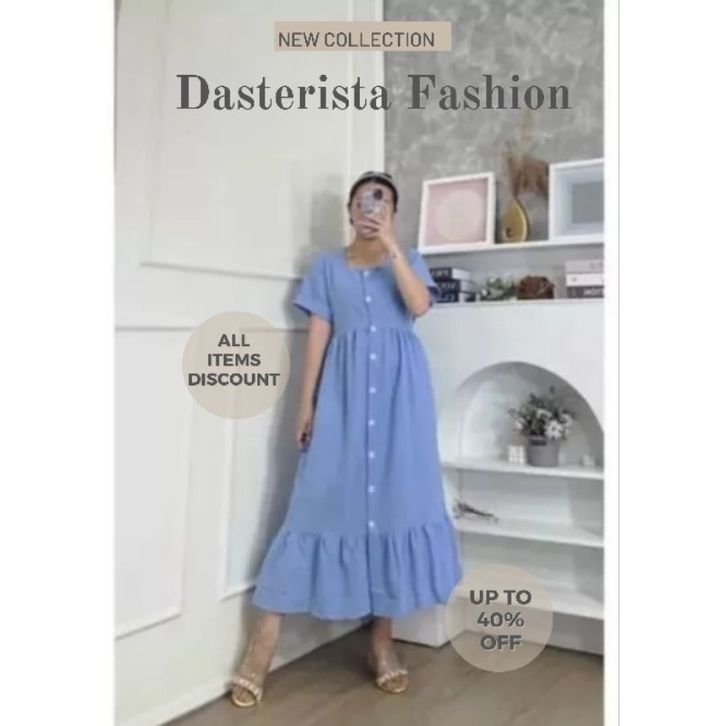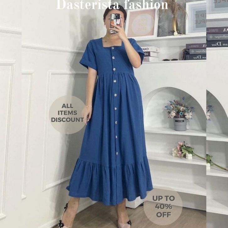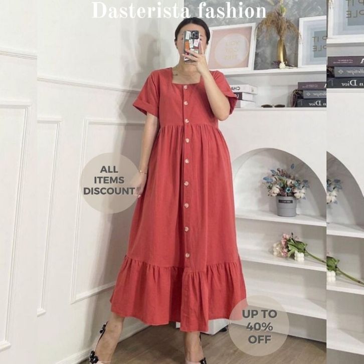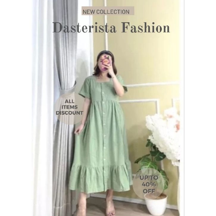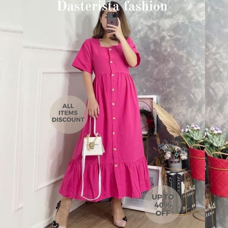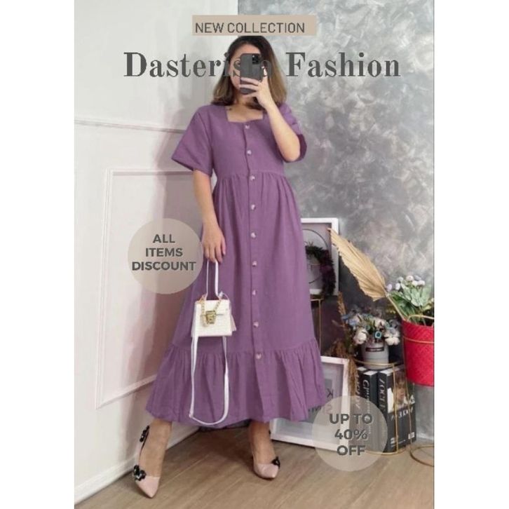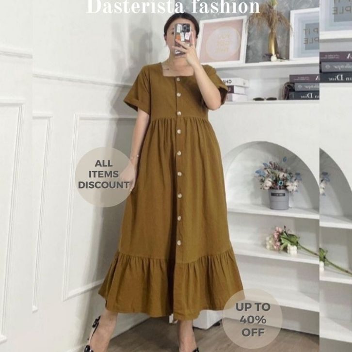 Dress Crinkle Airflow Full Kancing Kekinian Midii Dress Polos Kringkel Daster Wanita Busui Bumil Daily Kasual Santai