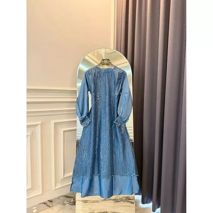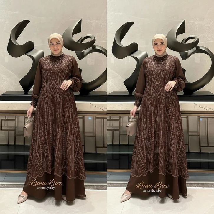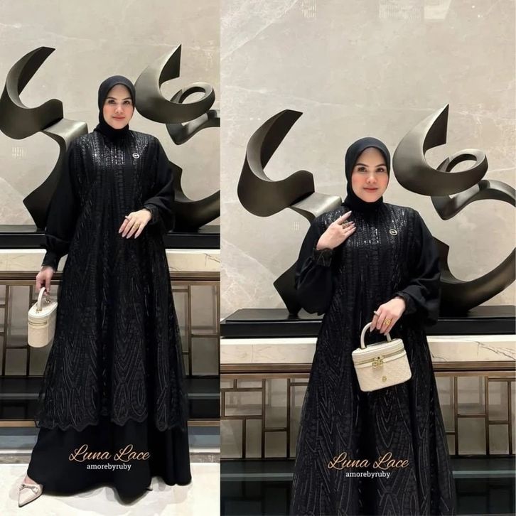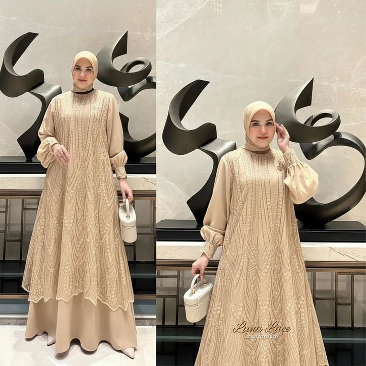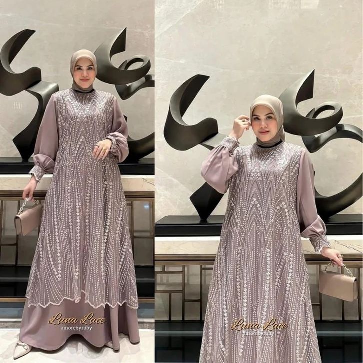 Luna Dress Brukat Silk Mix Tile Spanggel Premium Dress Kondangan Modern Gamis Pesta Kekinian Dress Lebaran 2026