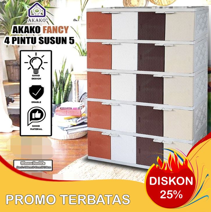 AKAKO - Lemari Pakaian 5 Susun 20 Pintu Motif ROTAN (kode : FANCY S5)