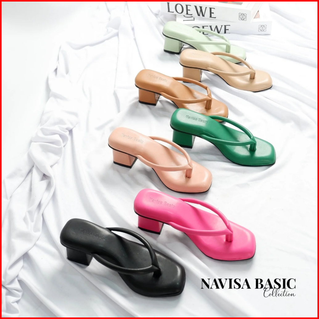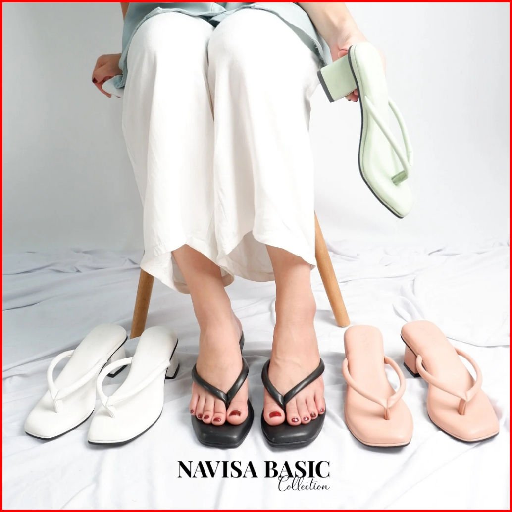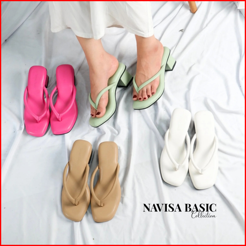 Heels Jepit Wanita Hak 5 Cm Super Empuk Busa Foam Navisa Basic Collection