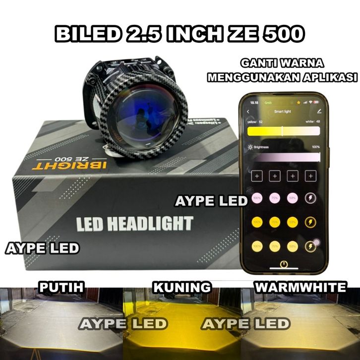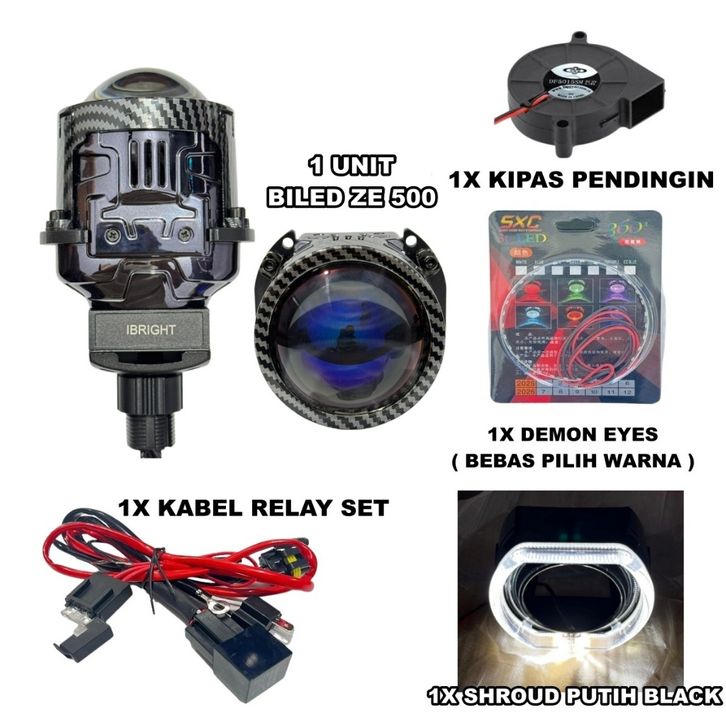 Lampu Biled Motor Projector ZE 500 IBRIGHT 2.5 inch Bluelens All Wheather Flat Cut Off Biled Motor Mobil