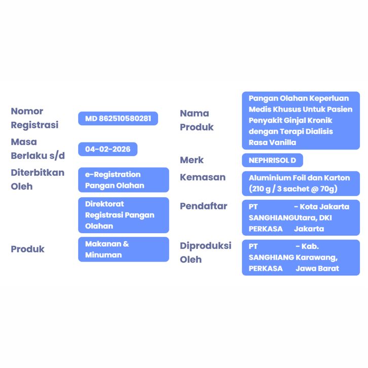 TERLARISSS NEPHRISOL-D VANILLA (NUTRISI KHUSUS PASIEN GINJAL KRONIK HD/CAPD) - 210 GR