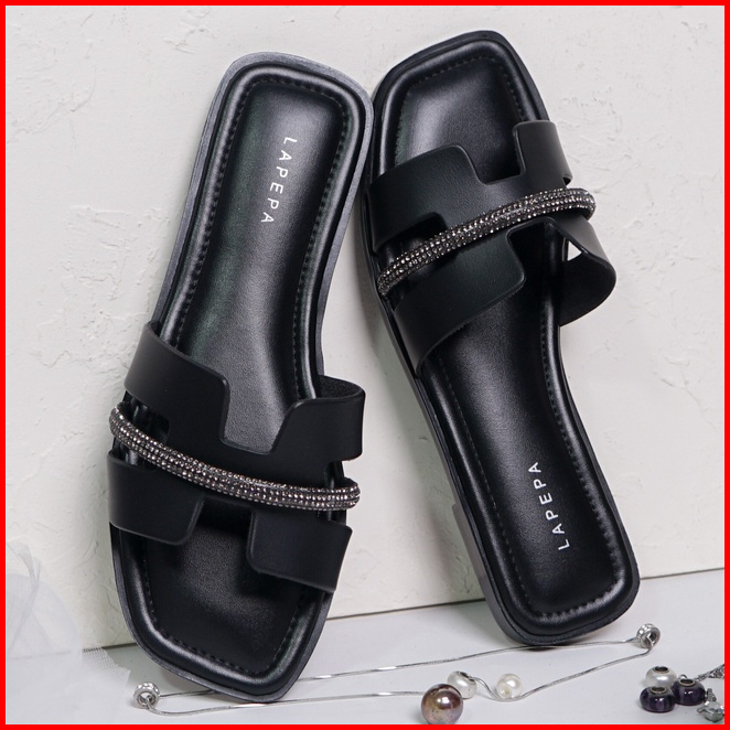 Lapepa Yuk - Tiara Sandal Wanita Teplek Korea Casual Size 36 - 40 Sendal Slop Blink Bling Empuk Flat Cewek Kasual Rumaha