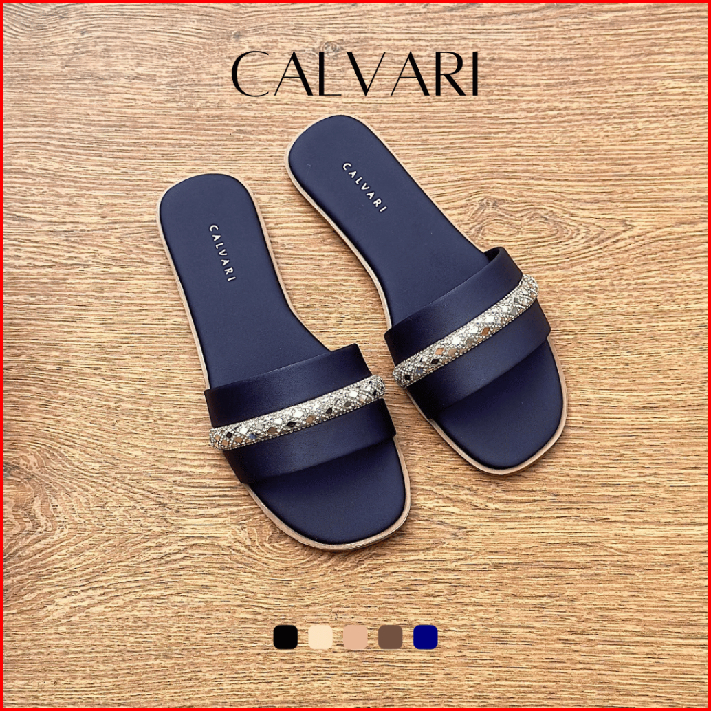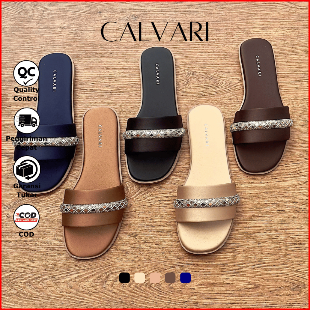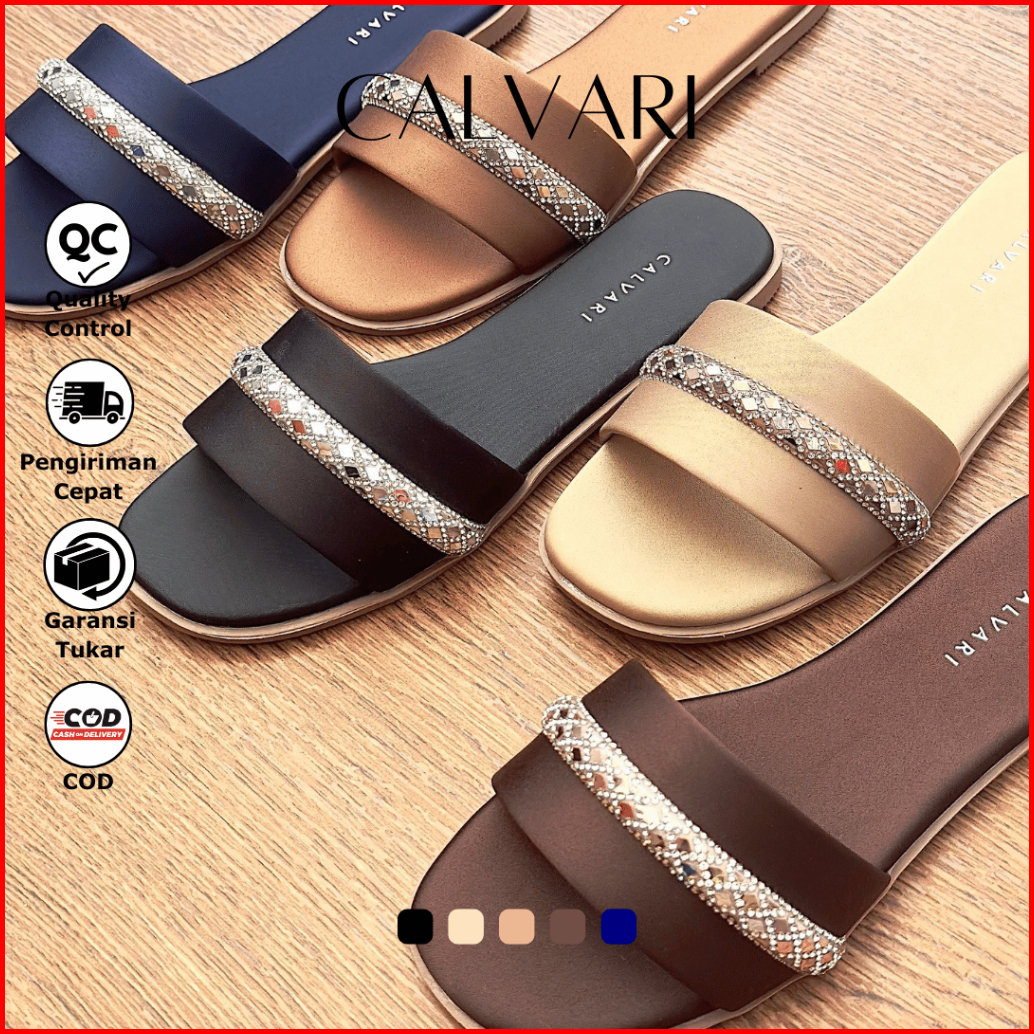 Calvari - Stella Sandal Wanita Korea Teplek Casual Kekinian Size 36 - 40 Sendal Flat Cewek Kasual