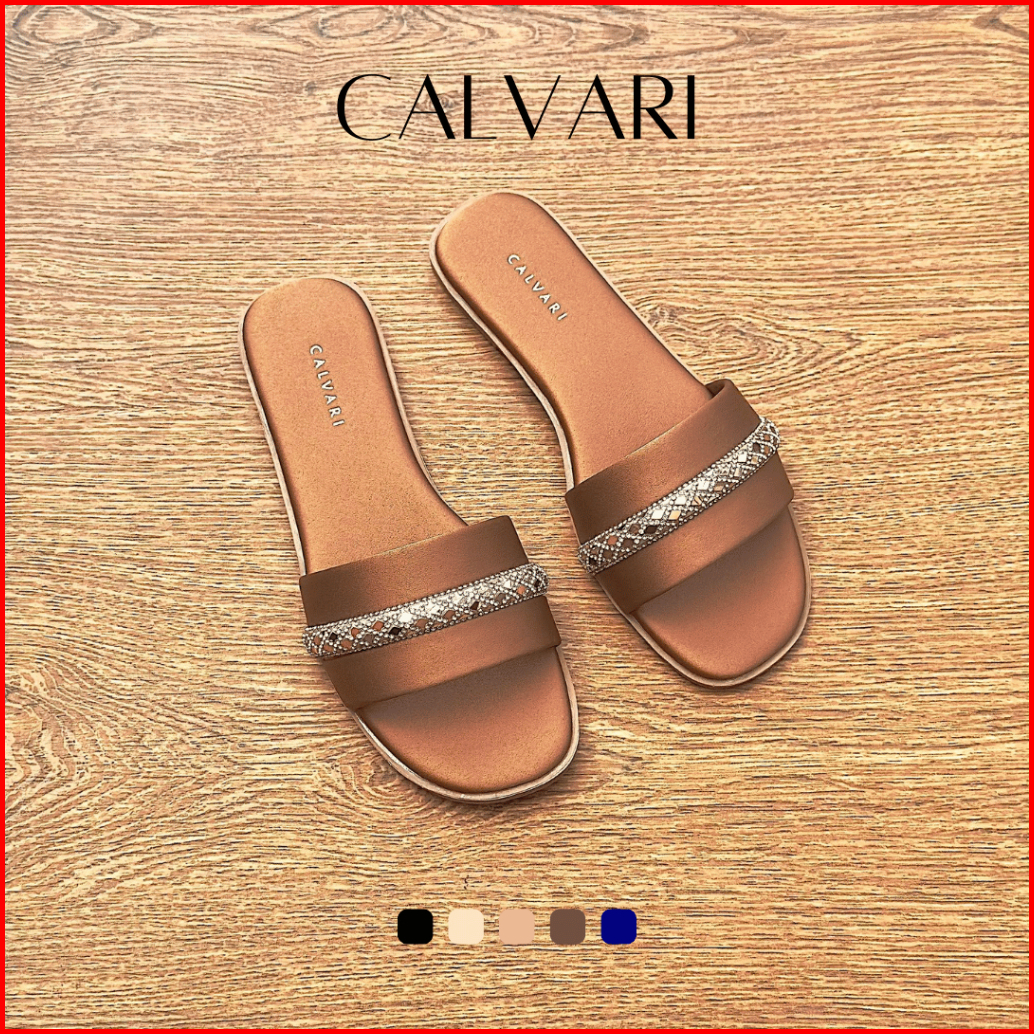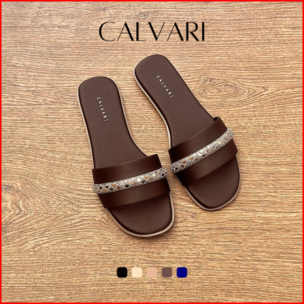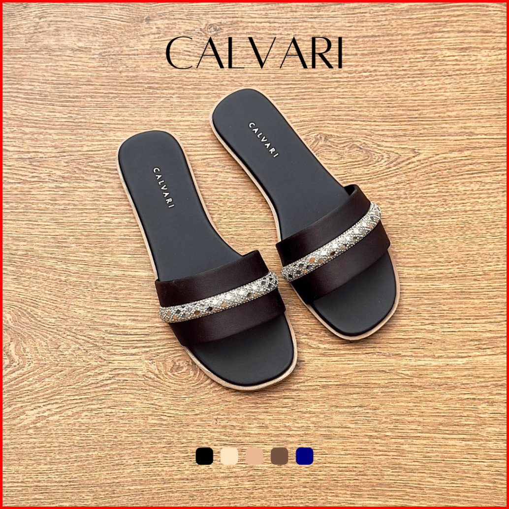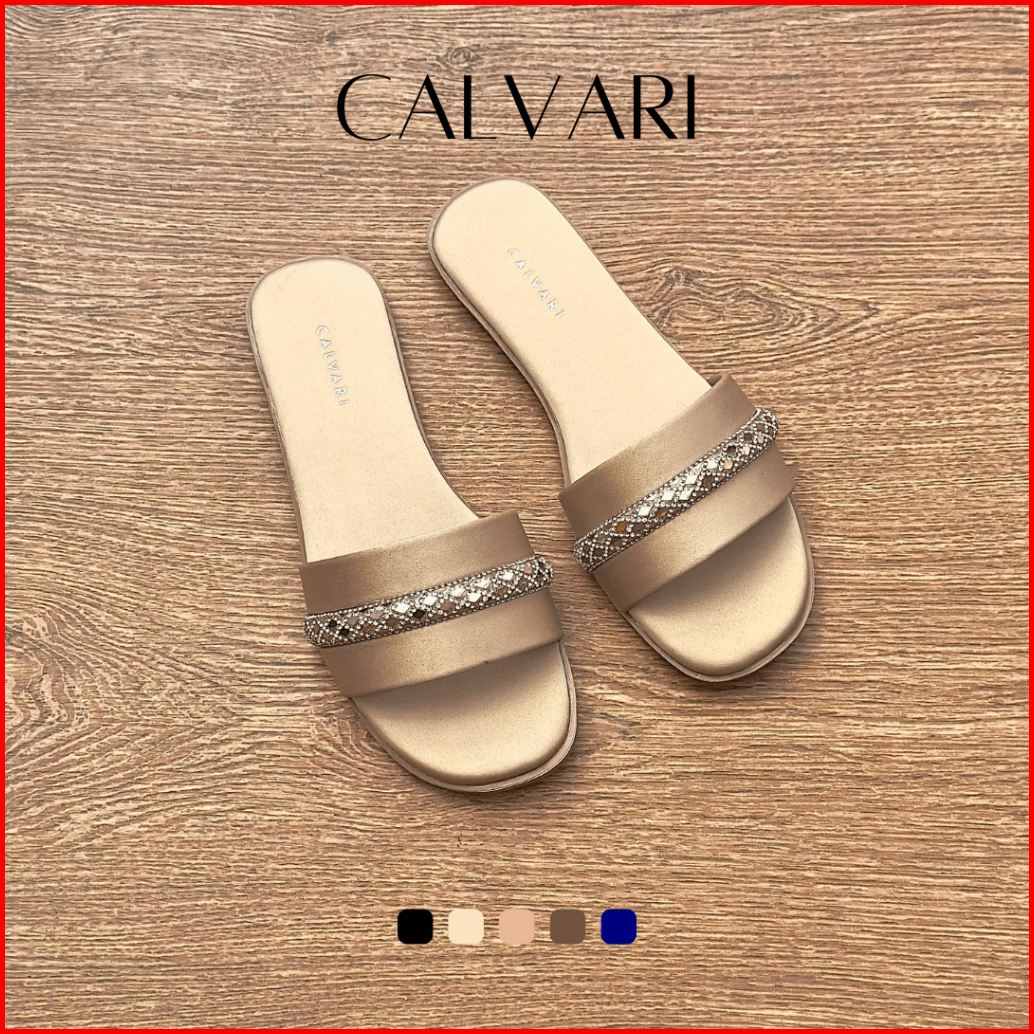 Calvari - Stella Sandal Wanita Korea Teplek Casual Kekinian Size 36 - 40 Sendal Flat Cewek Kasual