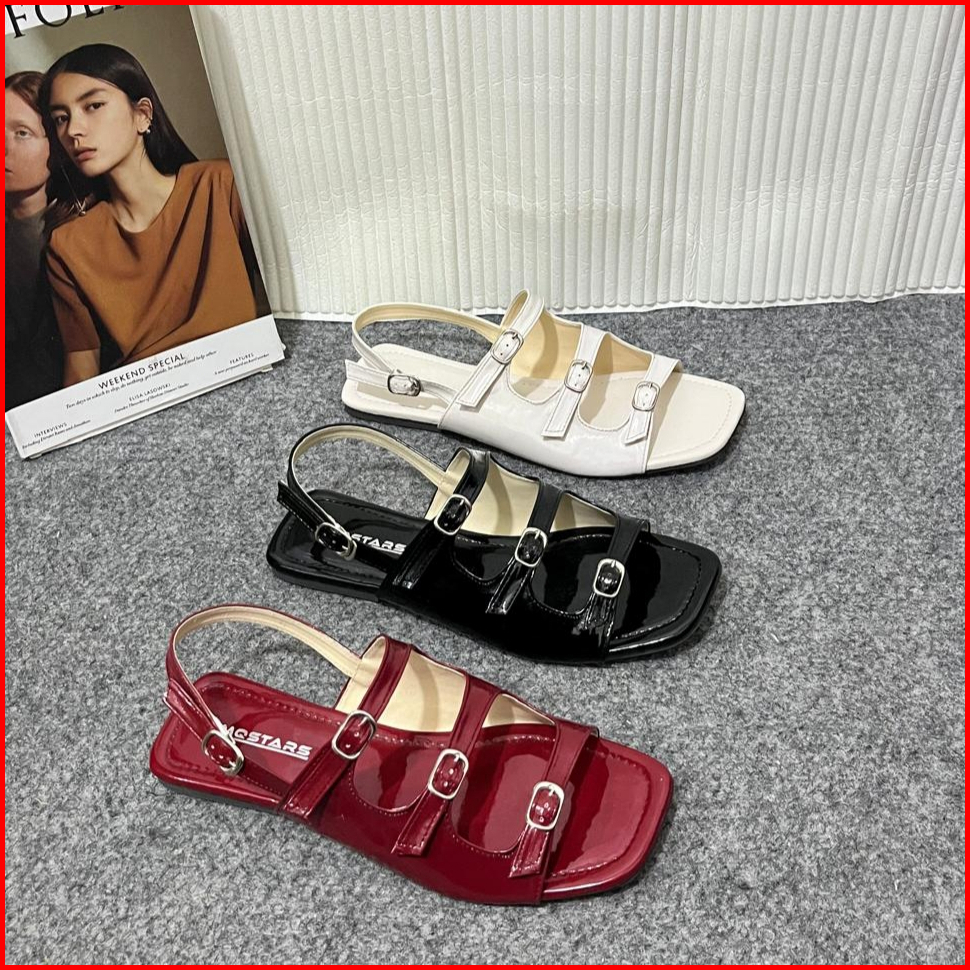 Mqstars -leony Sandal Flat Wanita Tali Gesper Fashion Kekinian