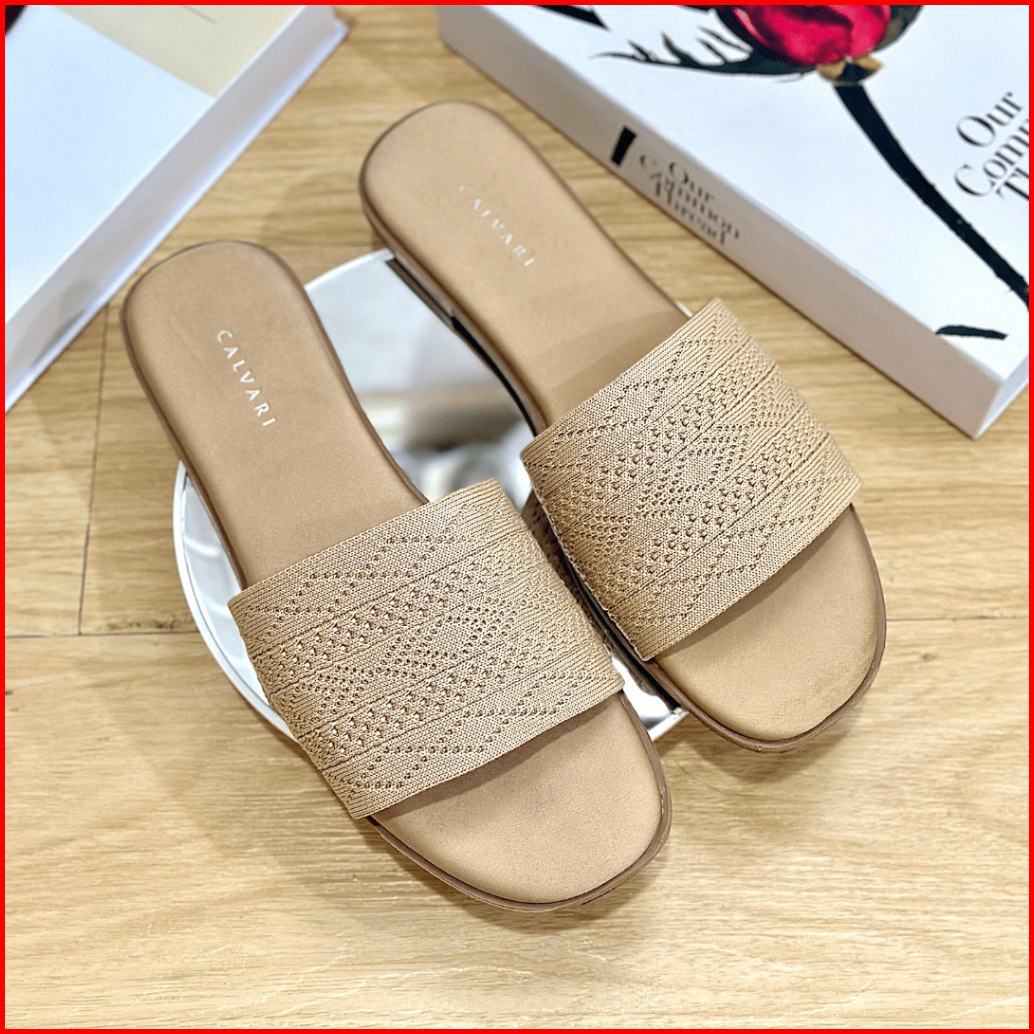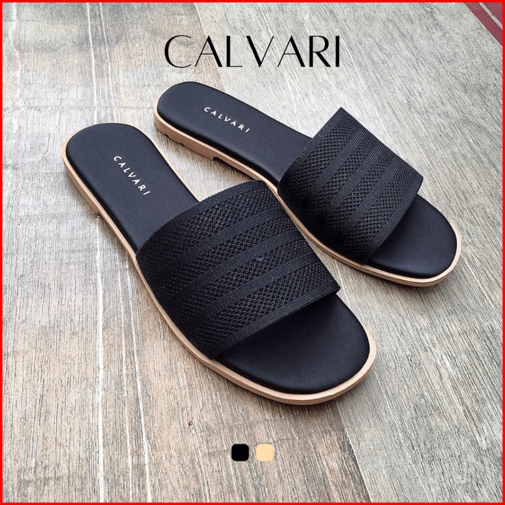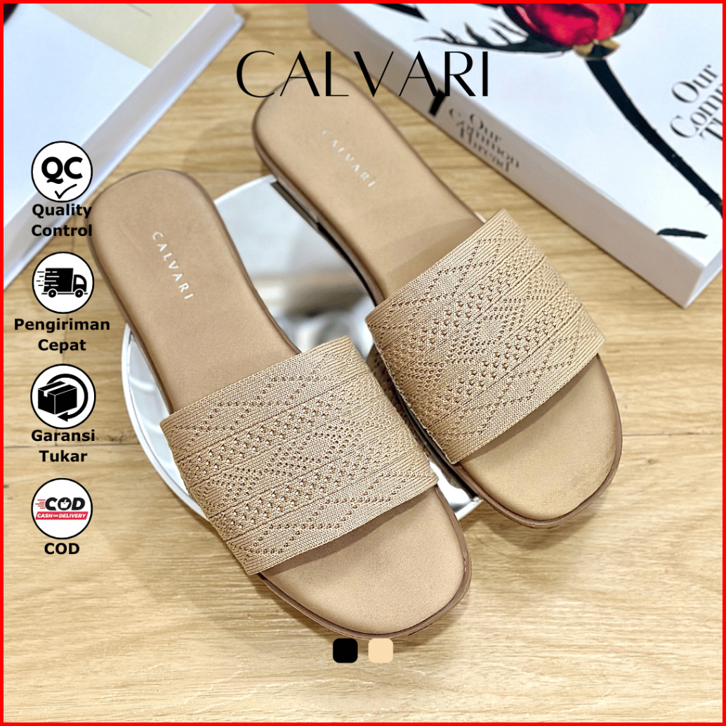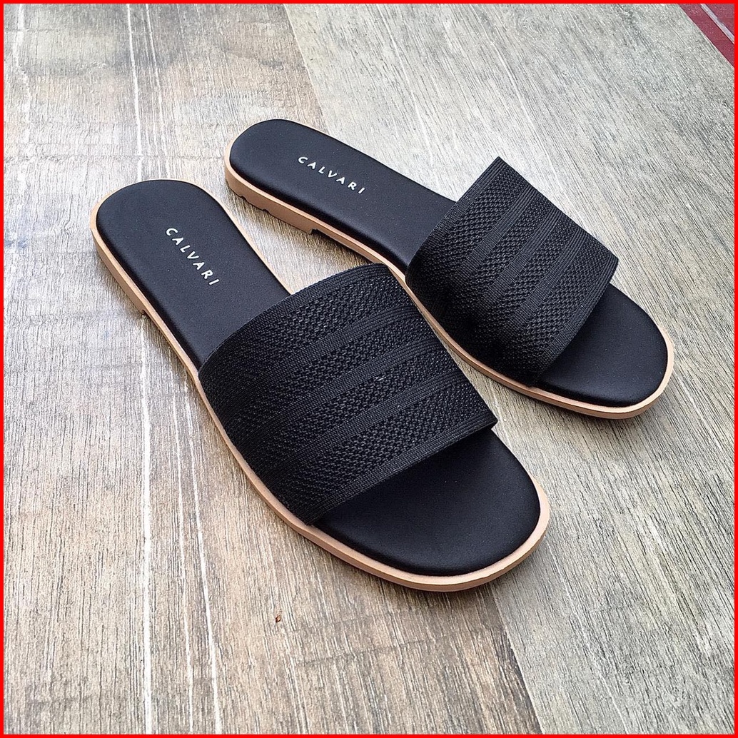 Calvari - Cvr01 Sandal Wanita Korea Teplek Casual Kekinian Size 36 - 40 Sendal Flat Cewek Kasual
