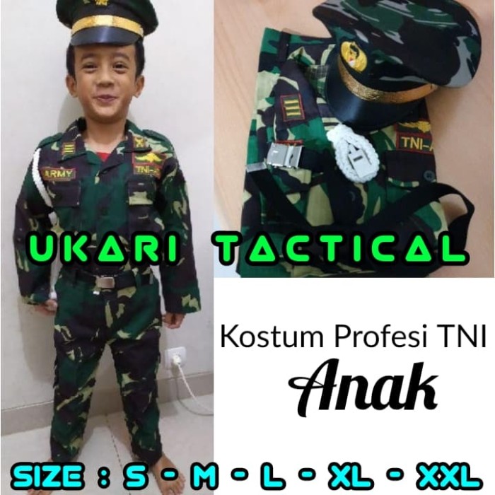 BAJU PROFESI ANAK TENTARA TNI SERAGAM KOSTUM KARNAVAL ABRI UKARI - PET CEWEK, XS