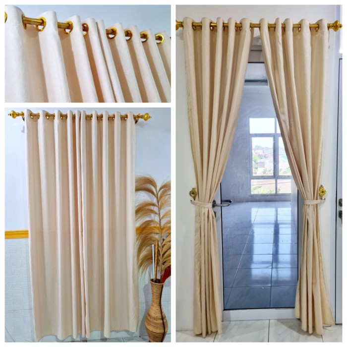 GORDEN PINTU KAMAR - HORDENG JENDELA PENDEK - KORDEN RUANG TAMU - EMBOS IVORY, L110XT150CM