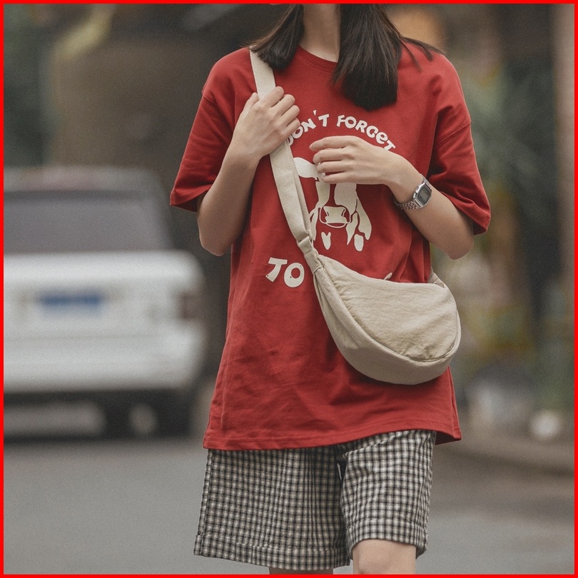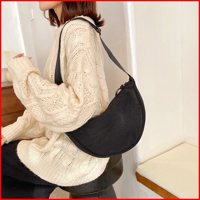 Tas Bahu Hobo Berbahan Nilon Korduroi Dengan Kapasitas Besar Untuk Perjalanan Dan Selempang Setengah Bulan Uniseks