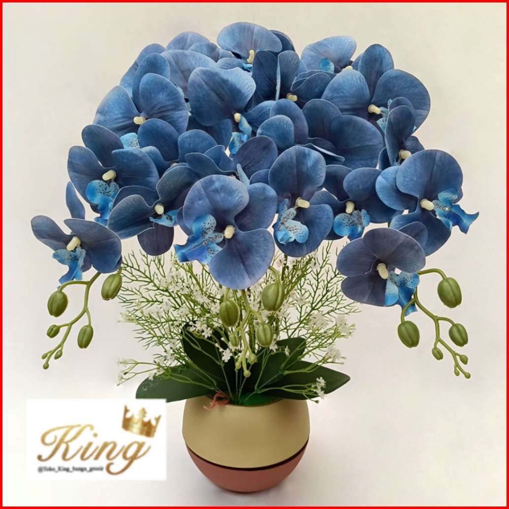 Anggrek Latex 3 Cabang Set Bunga Pot Premium Home Dekorasi Bunga Hias Rumah Decoration Artificial Orchid Pot