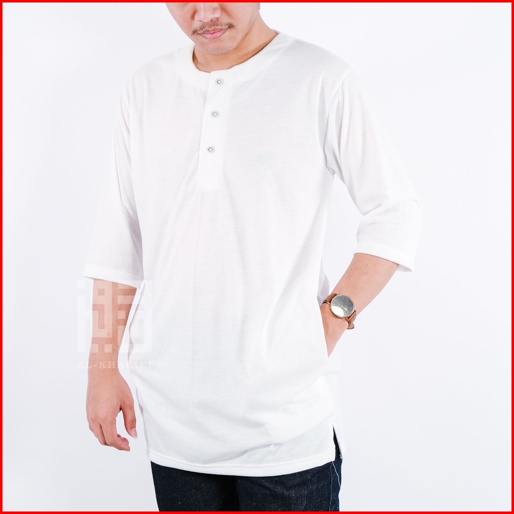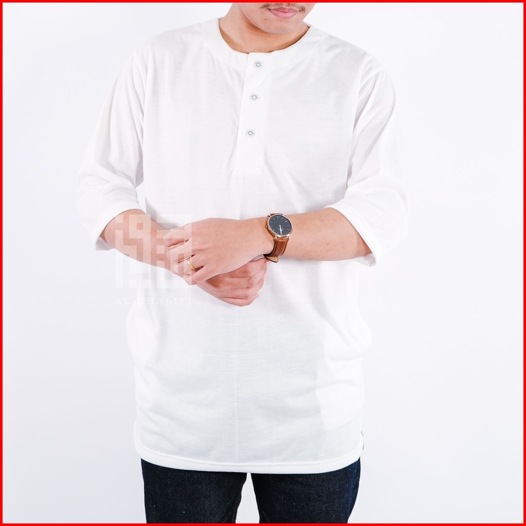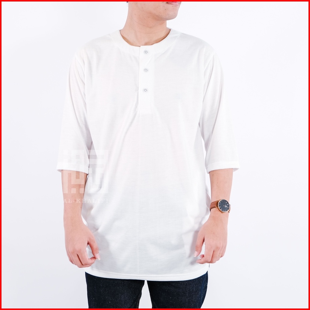 Al-khalifi - Kaos Koko Kurta - Kurta Dewasa Motif Polos Lengan 3 4 - White Bones