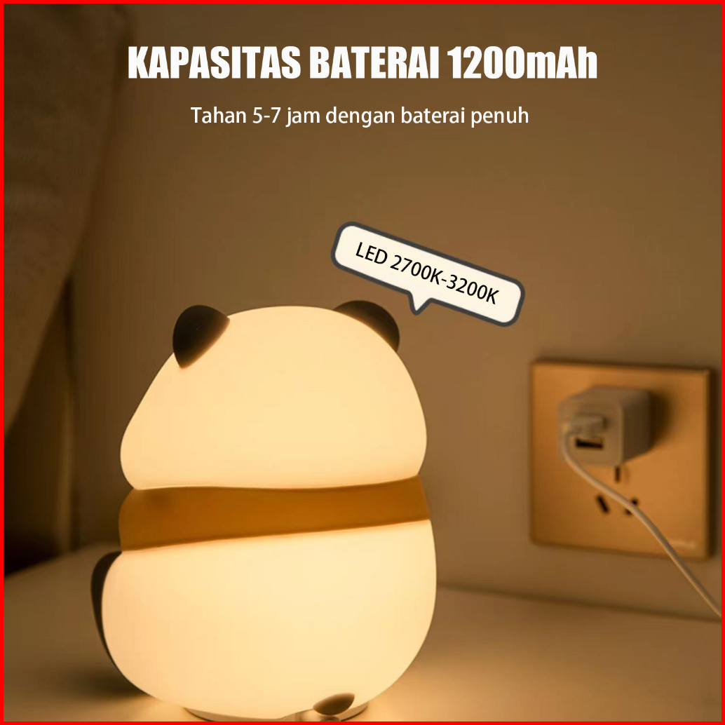 Lampu Tidur Led Bentuk Panda Rechargeable 1200mah