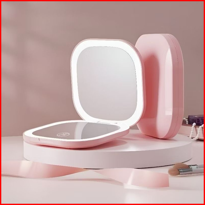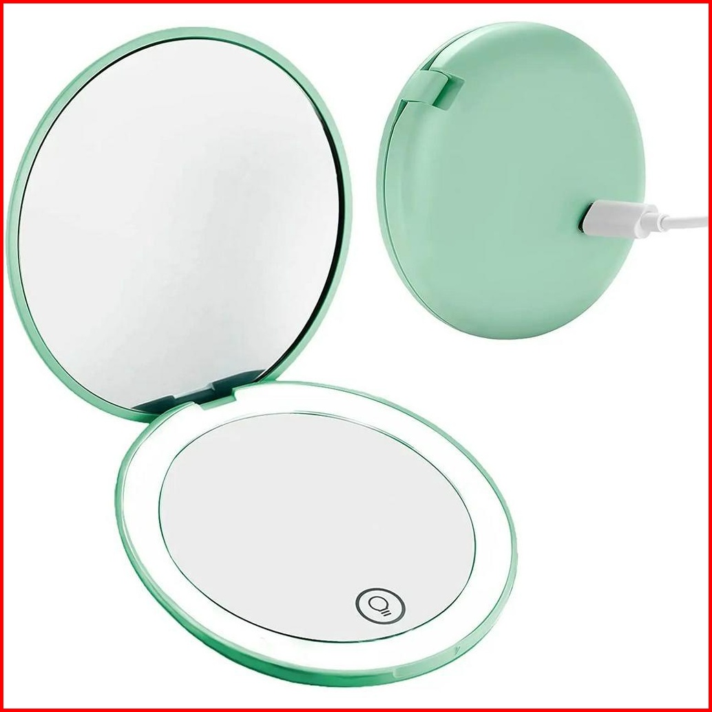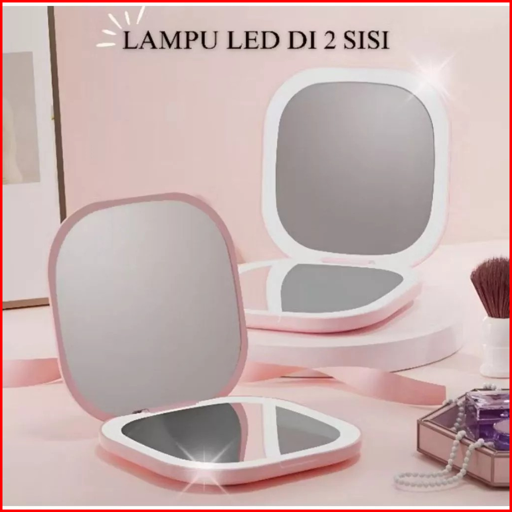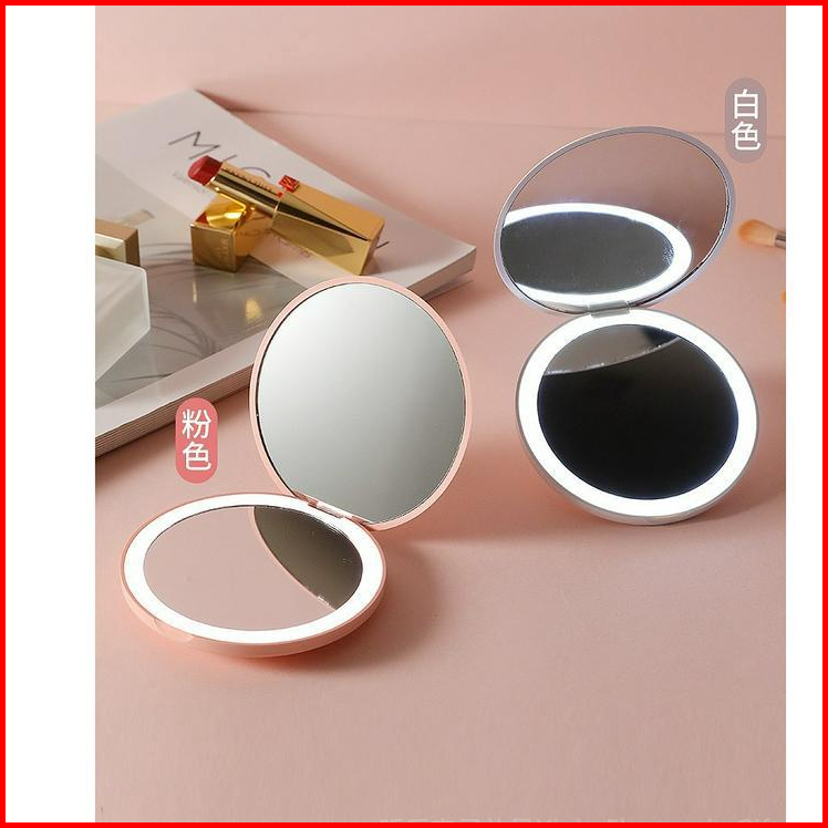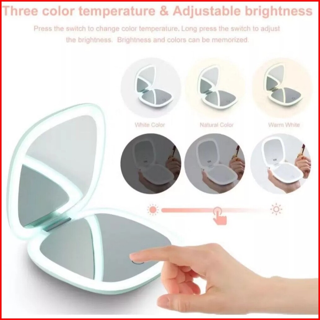 Mirror Lipat Mini Model Touch Screen Kaca Rias Bulat Lampu Led Portable Cermin Rias Lampu 2 Sisi