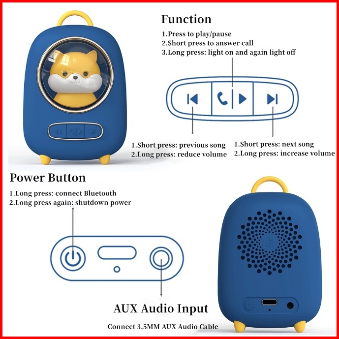 Corn Cute Wireless Speaker Bluetooth 5.0 Portable Mini Super Bass Speaker Mendukung Aux Handsfree Ipx6 Waterproof Built-