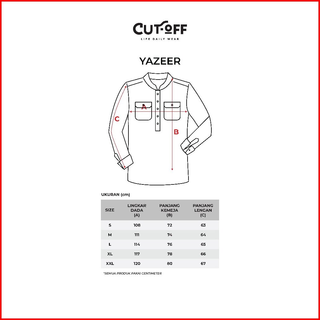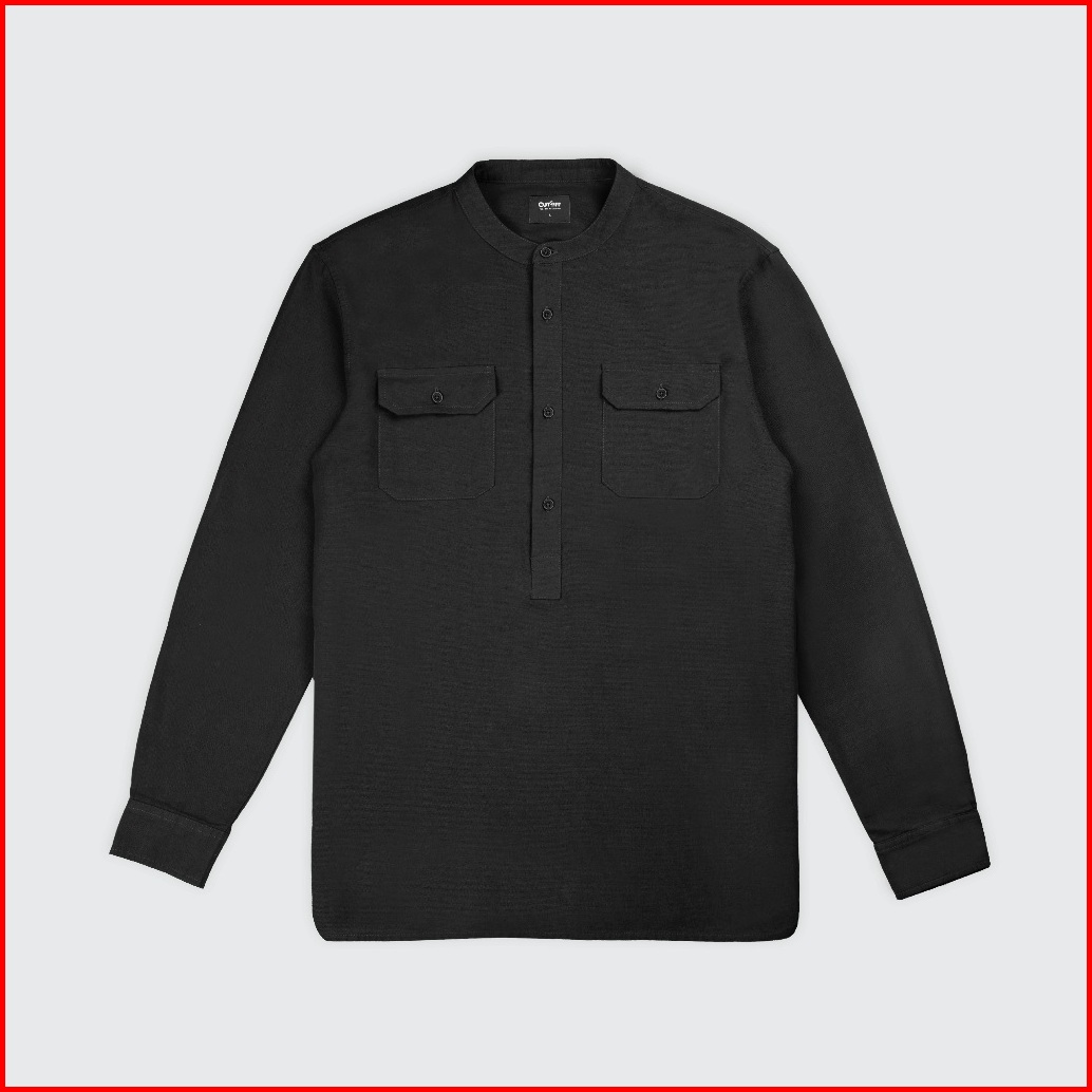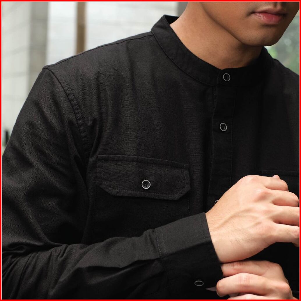 Cutoff Yazeer Collarless Shirt Kemeja Koko Cotton Rami Formal Basic Polos Pria Lengan Panjang