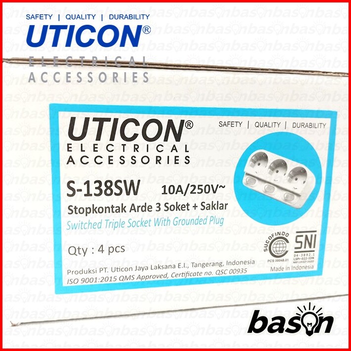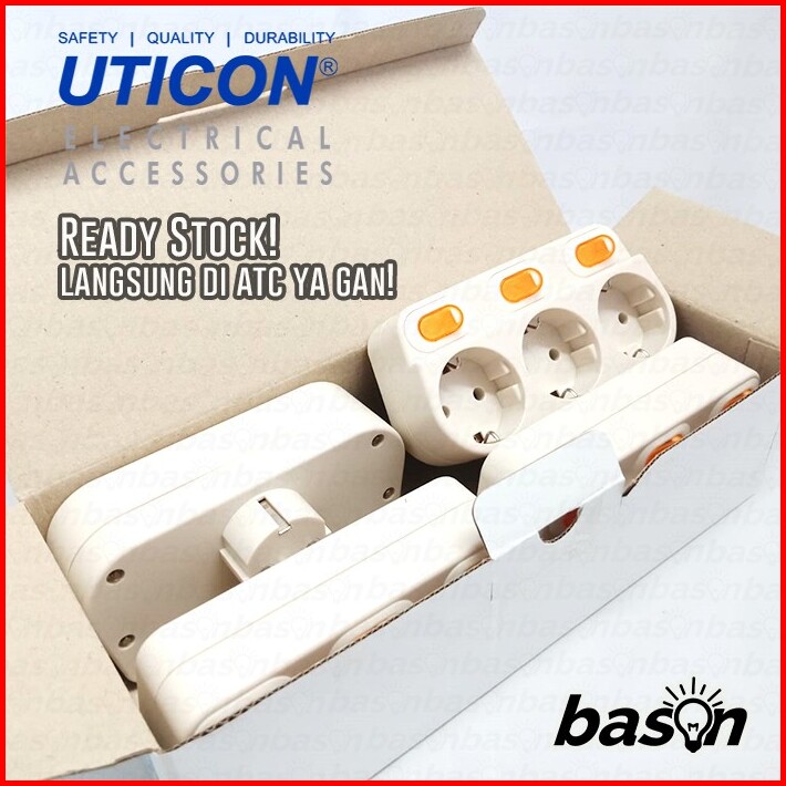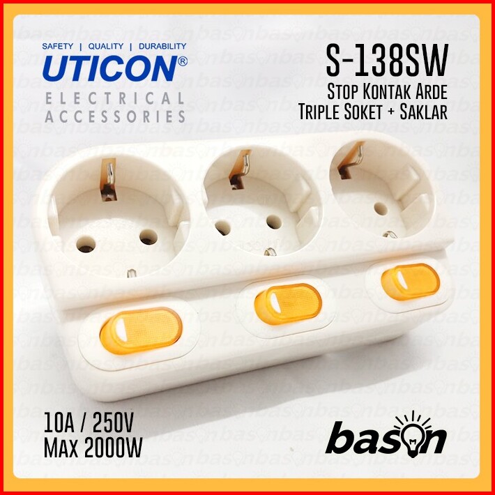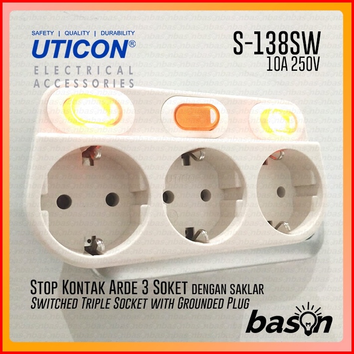 Uticon S138sw - Stop Kontak Arde Triple Socket Saklar