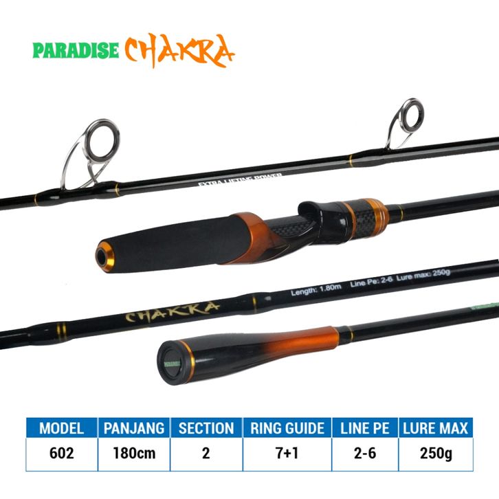 Joran Pancing Seasir Paradise Joran Pancing Chakra Deep Sea Jigging Rod 180CM PE 2-6 Butt Joint Japan Style Carbon Soli