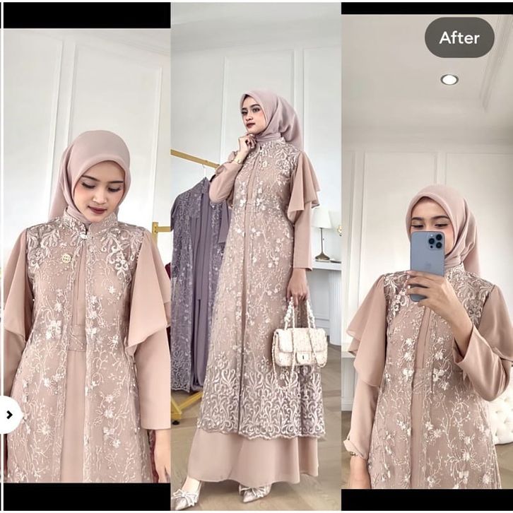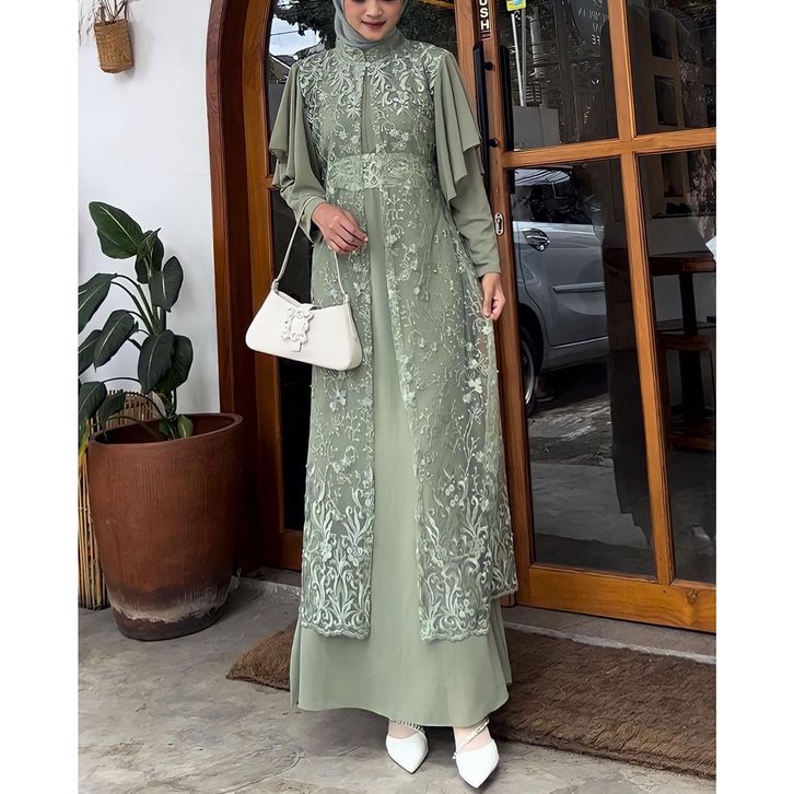 GEORGINA DRESS INNER + OUTER BRUKAT PREMIUM FREE BELT + BROSS / ONESET DRESS KONDANGAN PLUS OUTER BY DP