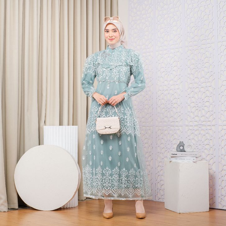 Baru. RAISHA-Dakota Gamis Kondangan 2024 Payet Bahan Full Tile Brokat Depan Belakang + Puring Hyget Untuk Kondangan, La