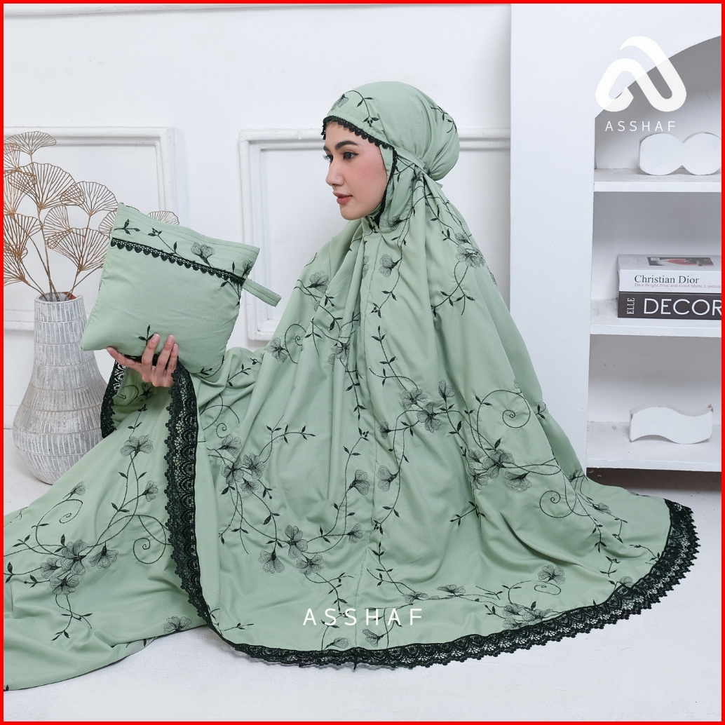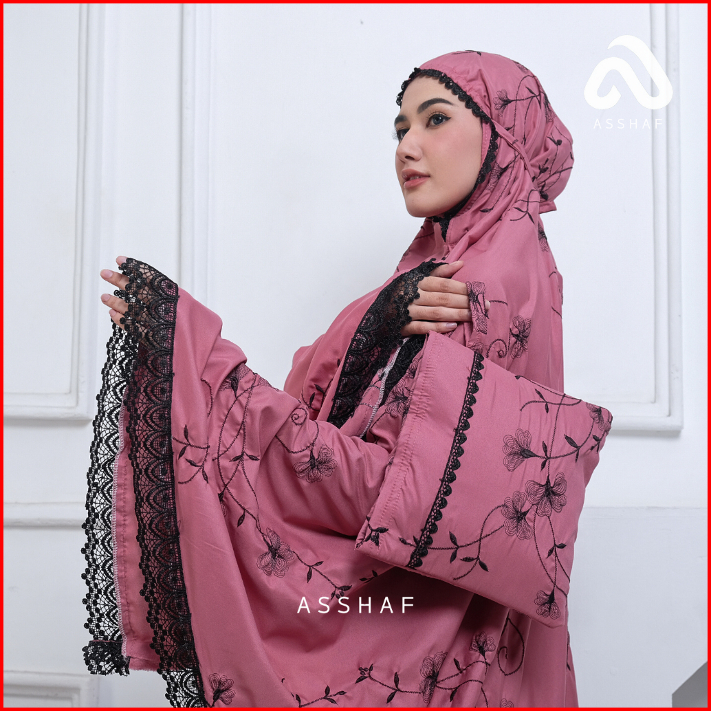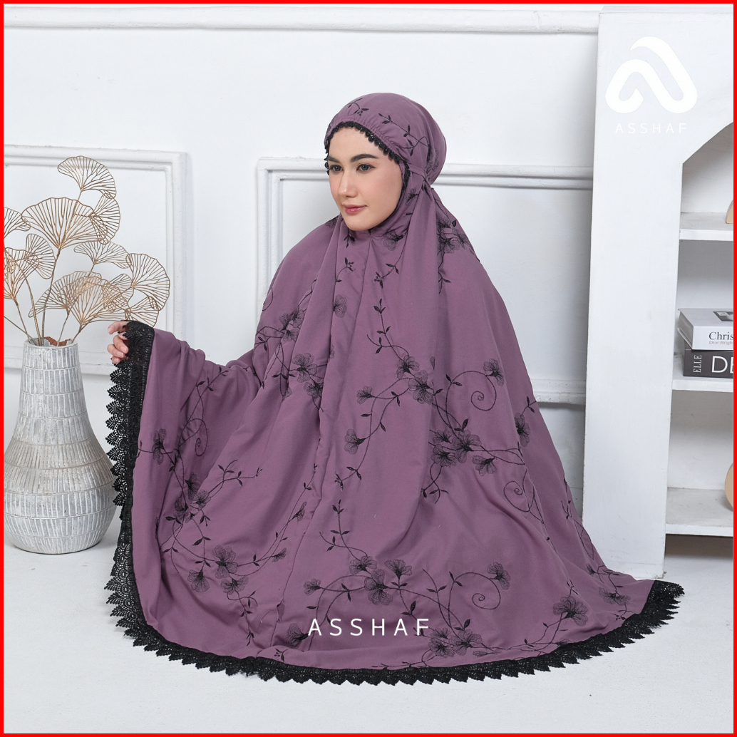 Asshaf - Mukena Dewasa Katun Bordir Bunga Amarilis Renda Cantik