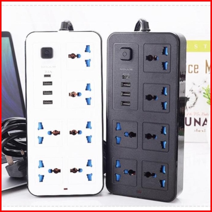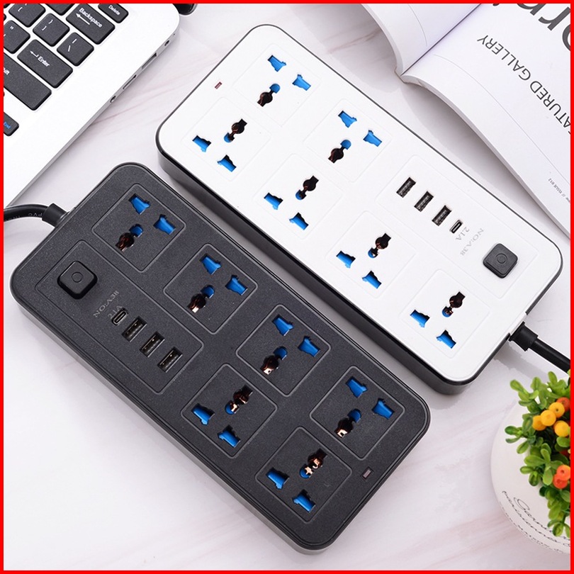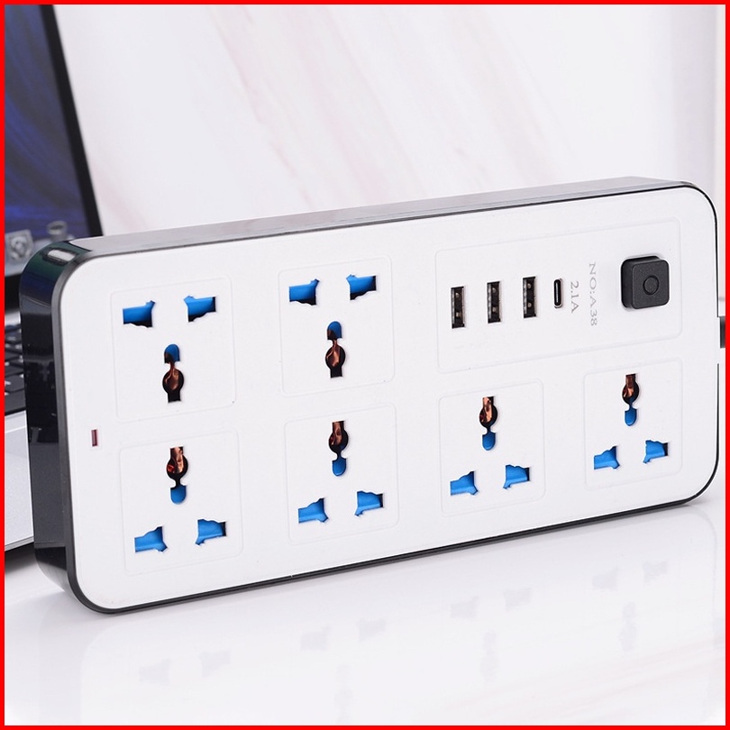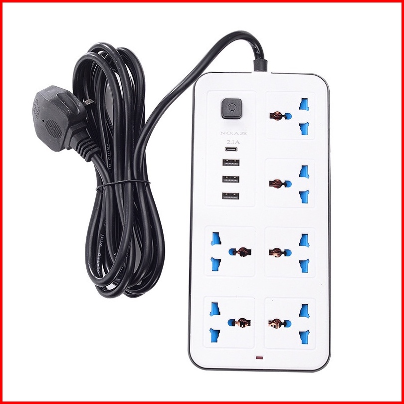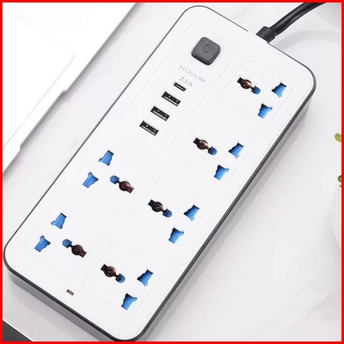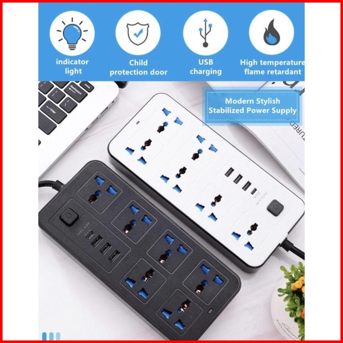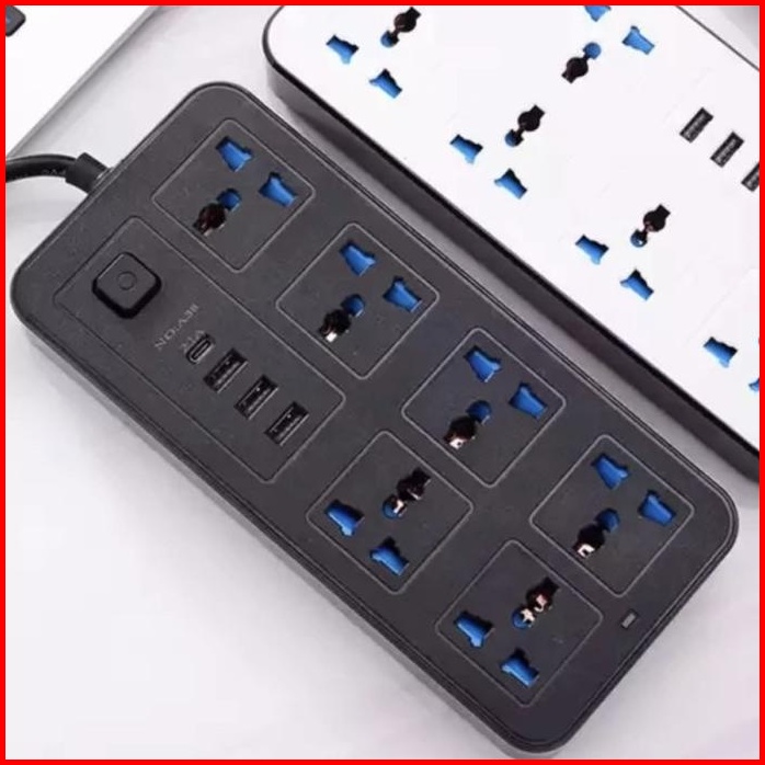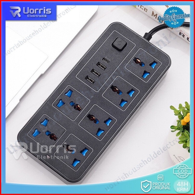 Universal Power Strip Stop Kontak 6 Power Socket 3 Usb Port C Fast Charging - Kabel 2 Meter Stop Kontak Colokan Multigun