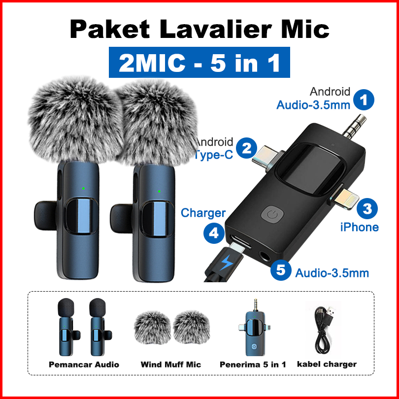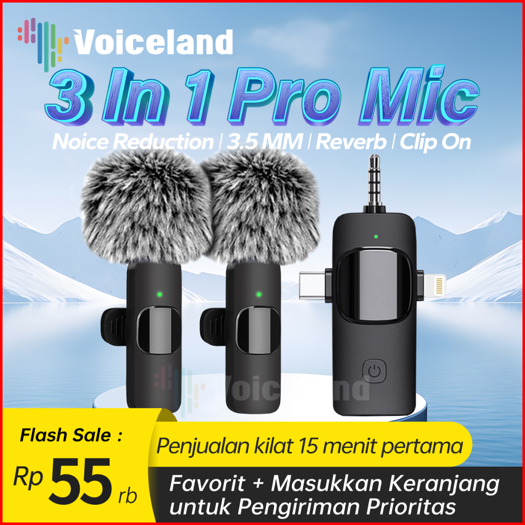 3 In 1 Pro Mic3.5mm Mikrofon Nirkabel Lavalier Mic Portabel Audio Video Pembuatan Rekaman Wireless Microphone Konten Kre