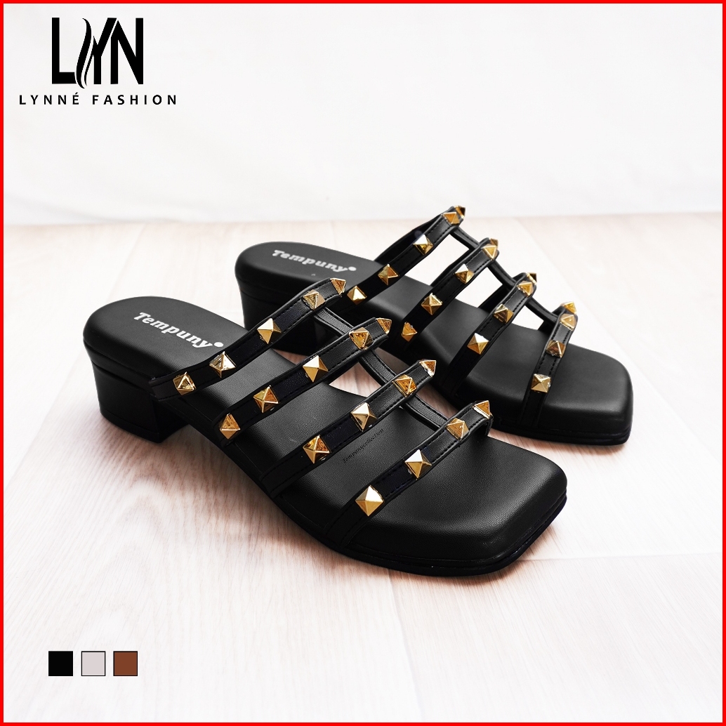 Lyn Sandal Selly Heels Wanita Hak Tahu 3 Cm Variasi Piramid