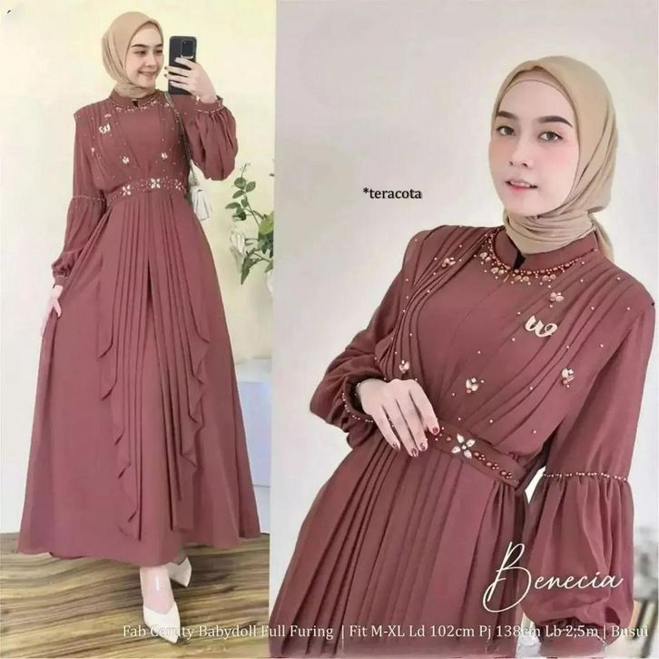 NARET FASHION BENECIA DRESS GAMIS CERUTY TERBARU APLIKASI MUTE ELEGAN DAN KEKINIAN GAMIS KONDANGAN CERUTY BABYDOLL FUL