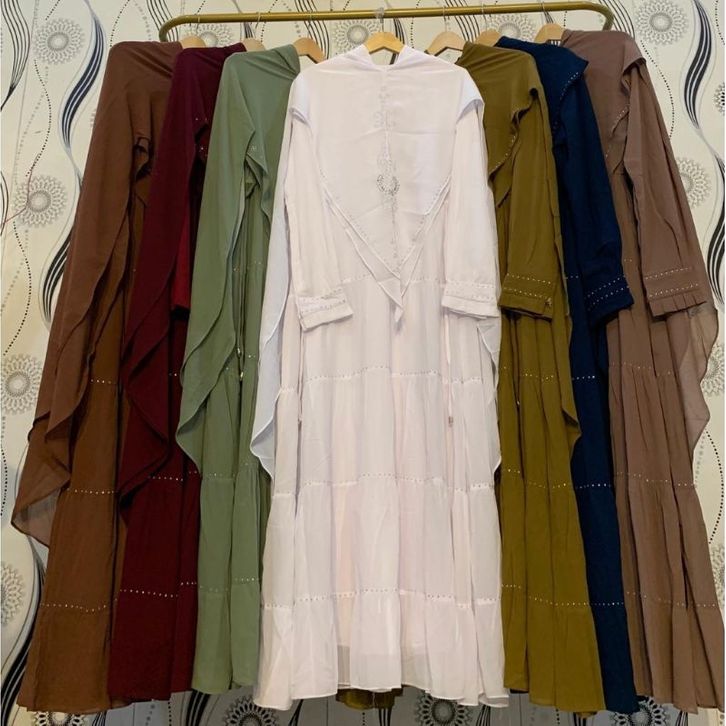 gamis syari all size muat bb 40 sampai 85kg mewah elegan M0Del tingkat kerut ceruty polos