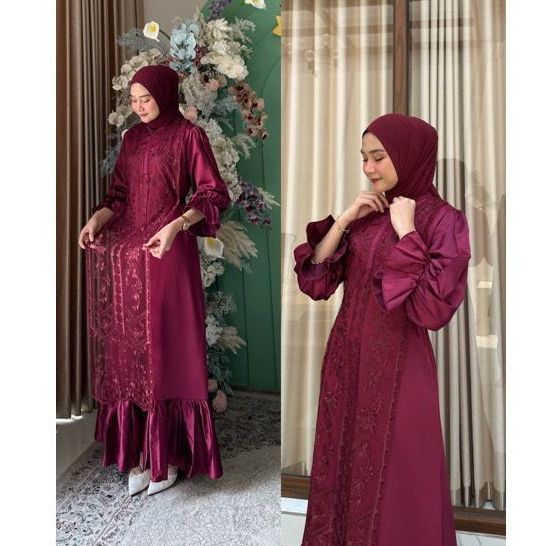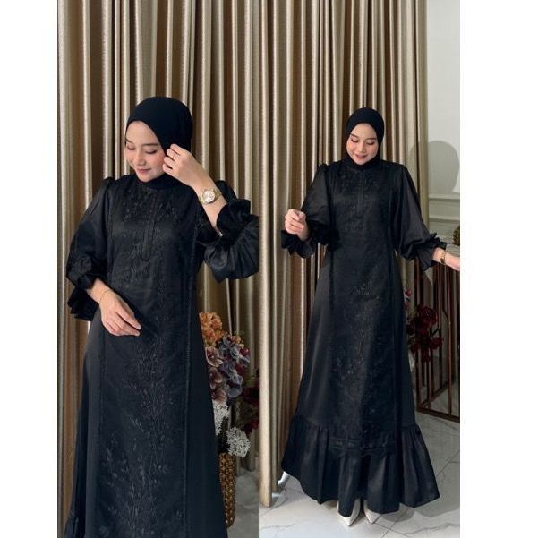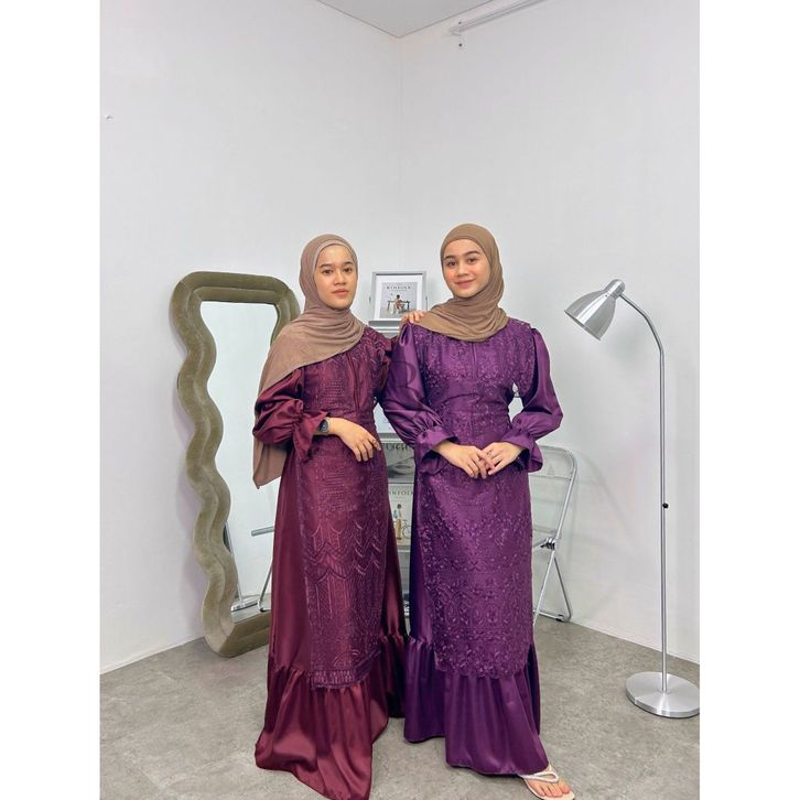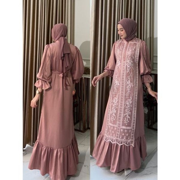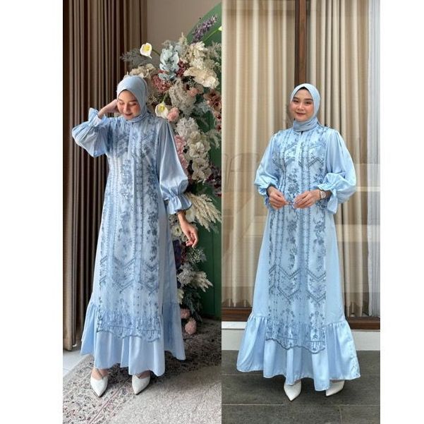 SNOWY DRESS SILK MIX TILLE BRUKAT GAUN KONDANGAN BUSUI FRIENDLY GAMIS REMAJA MAXI DRESS SIMPLE ONE SET SIZE M, L, XL,