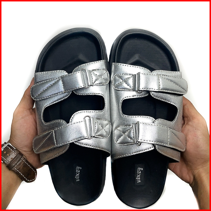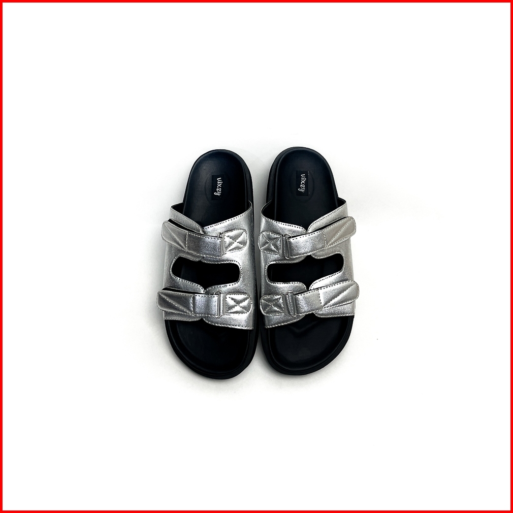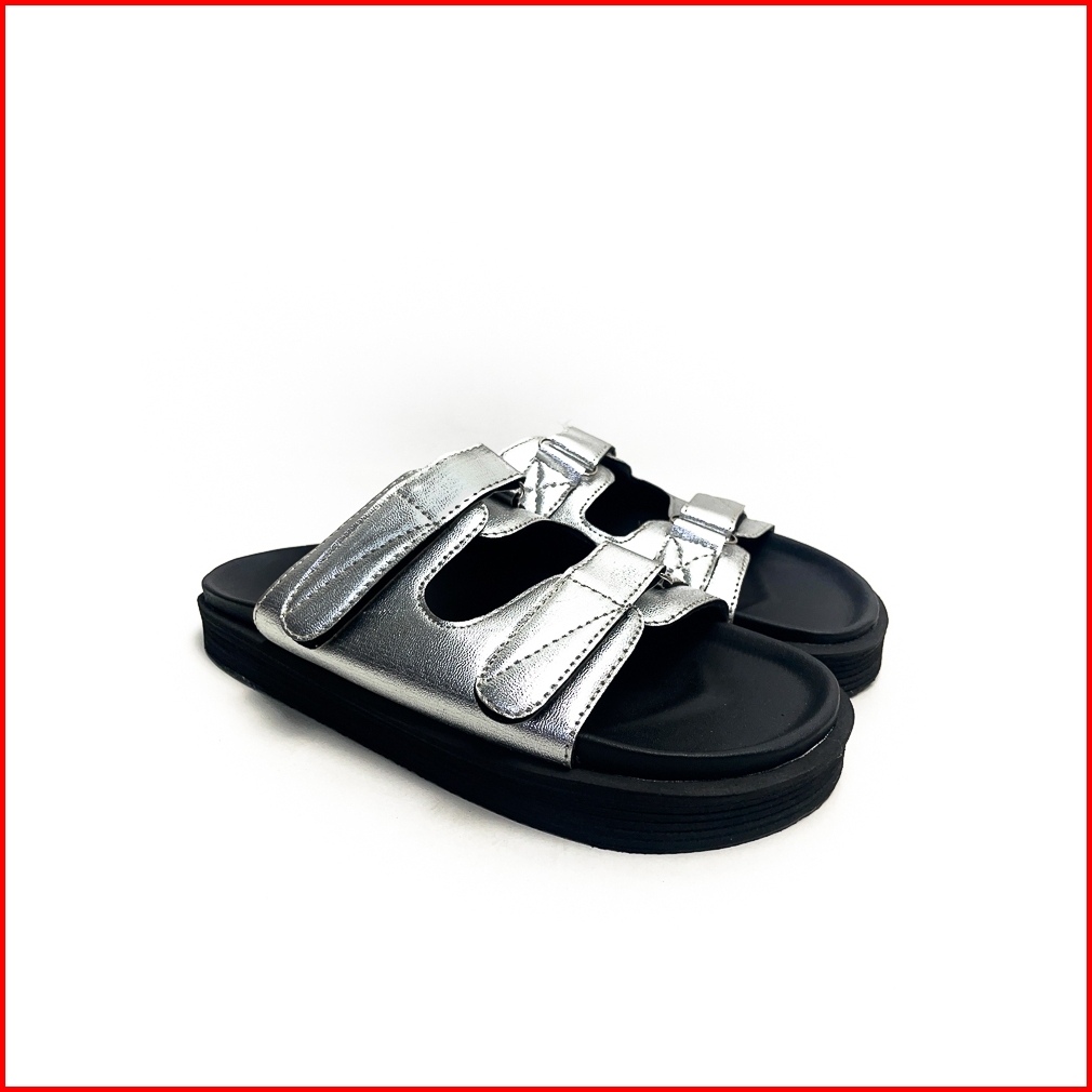 Sandal Wanita Slop Platform Semi Wedges Flat Tinggi 3cm Bahan Glossy Mewah Perempuan Ukuran 36 Sampai 41 - Vixzy89