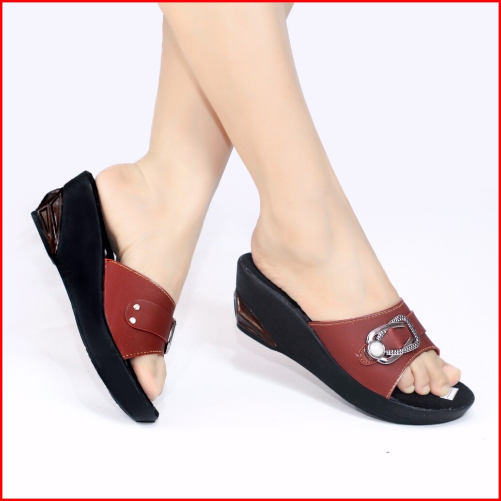 Sandal Wedges Wanita Casual Selop Slop Murah Zn04