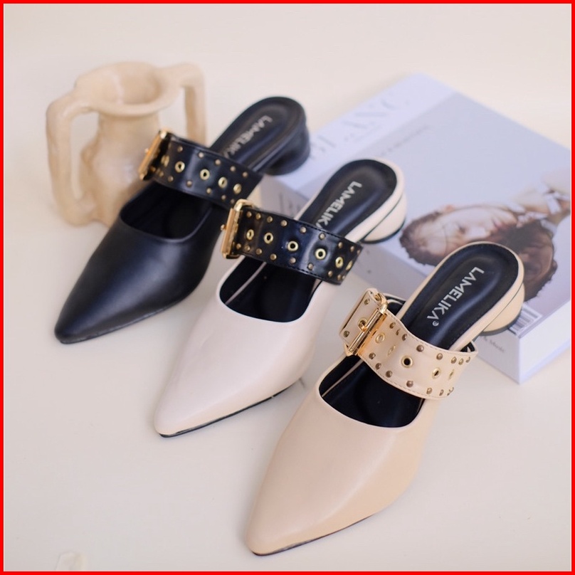 Lamelika Freya Sandal Sepatu Mules Wanita Heels 3cm Slip On Elegan